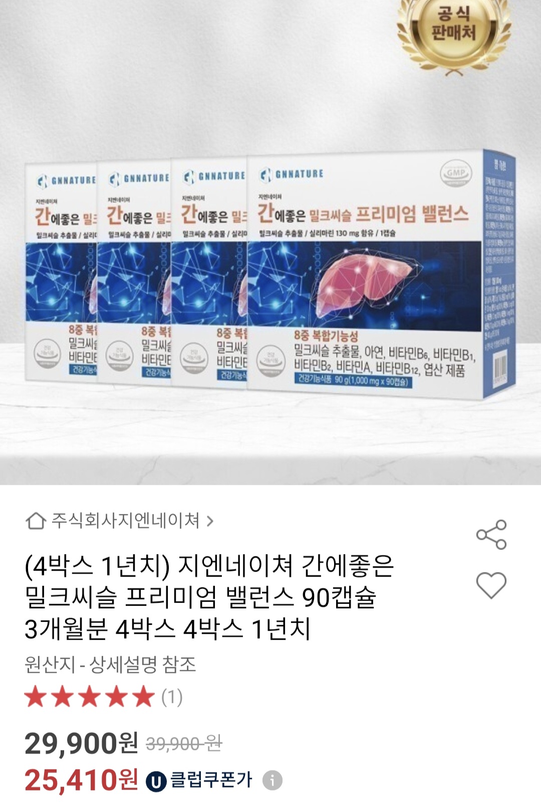 [옥션]지엔네이쳐 밀크씨슬 프리미엄 밸런스 1년치 (25,410원/무배)