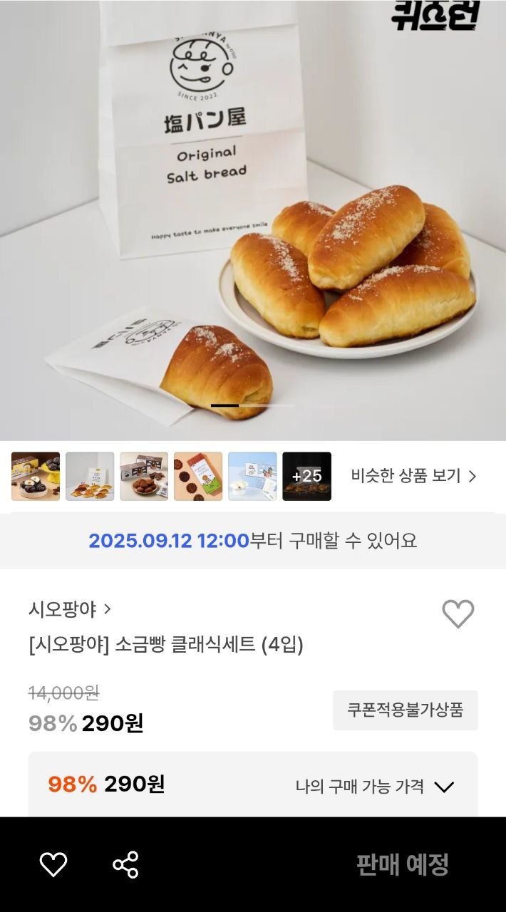 [29CM] 시오팡야 소금빵 4개 클래식 세트 (290원/별도)