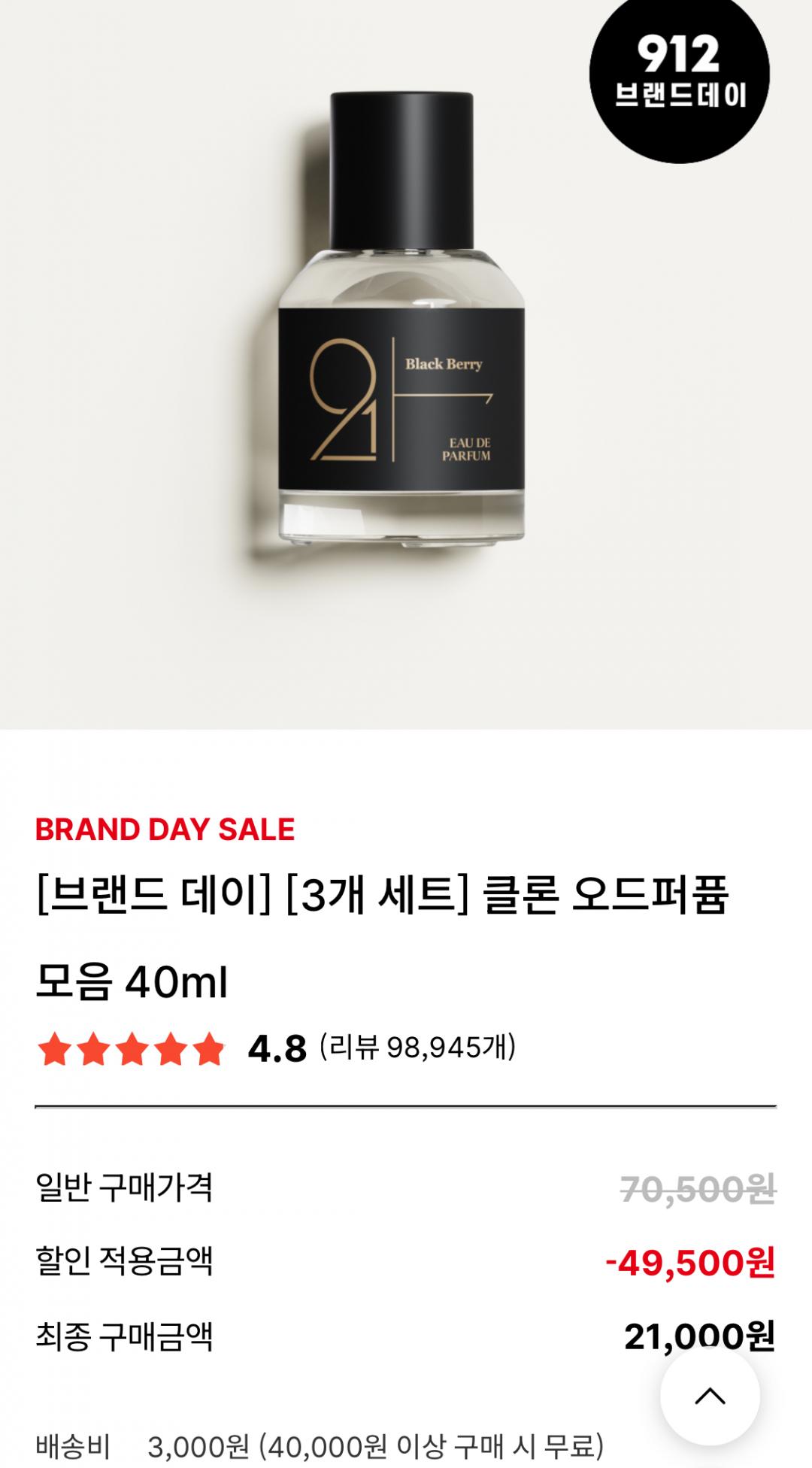 [공홈] 912 클론 오드퍼퓸 40ml 3개 세트 (21,000/무배) > 국내핫딜