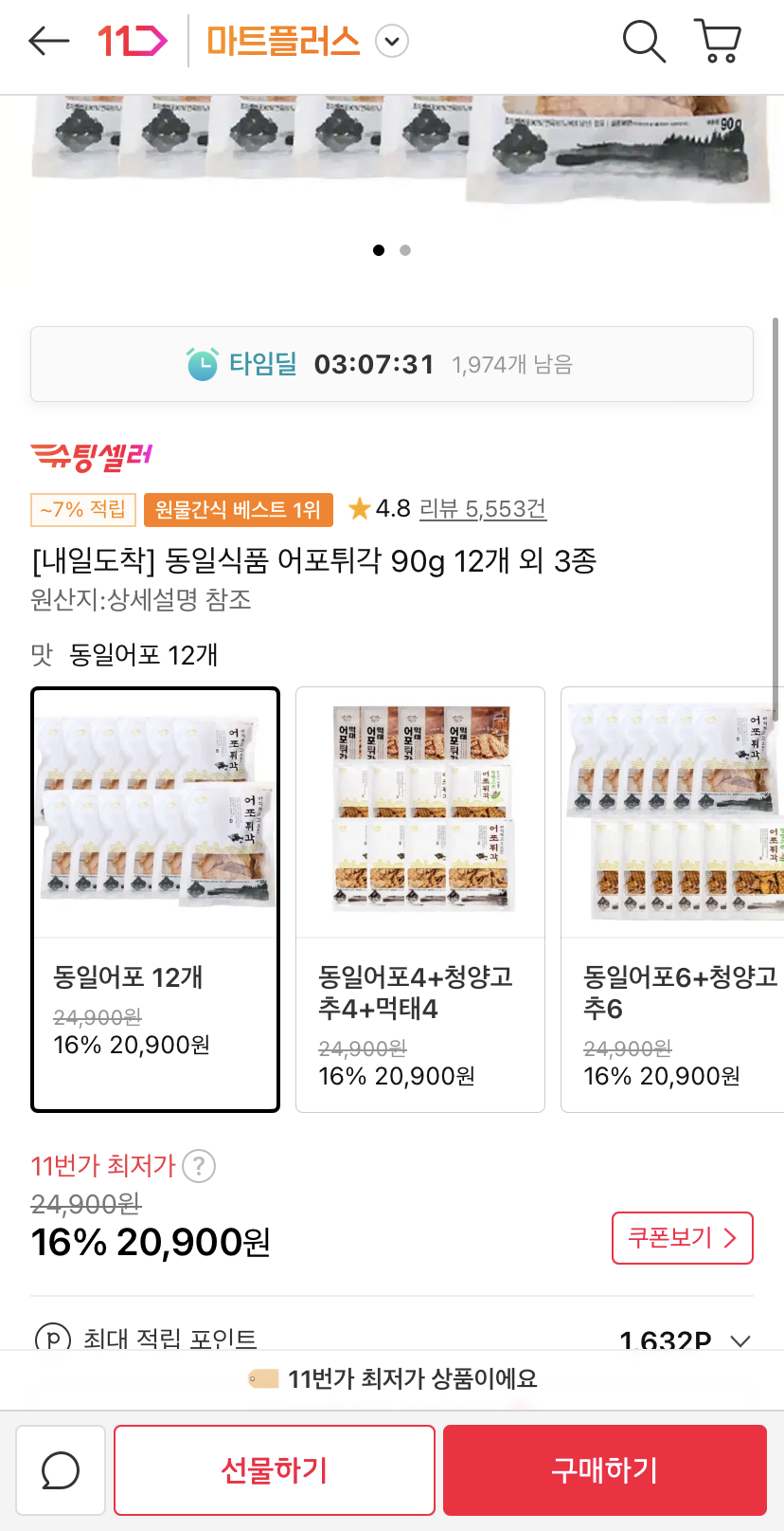 [11번가] 동일식품 어포튀각 12봉 오리지널/청양고추/먹태 (20,900원/무료) 댓글1개