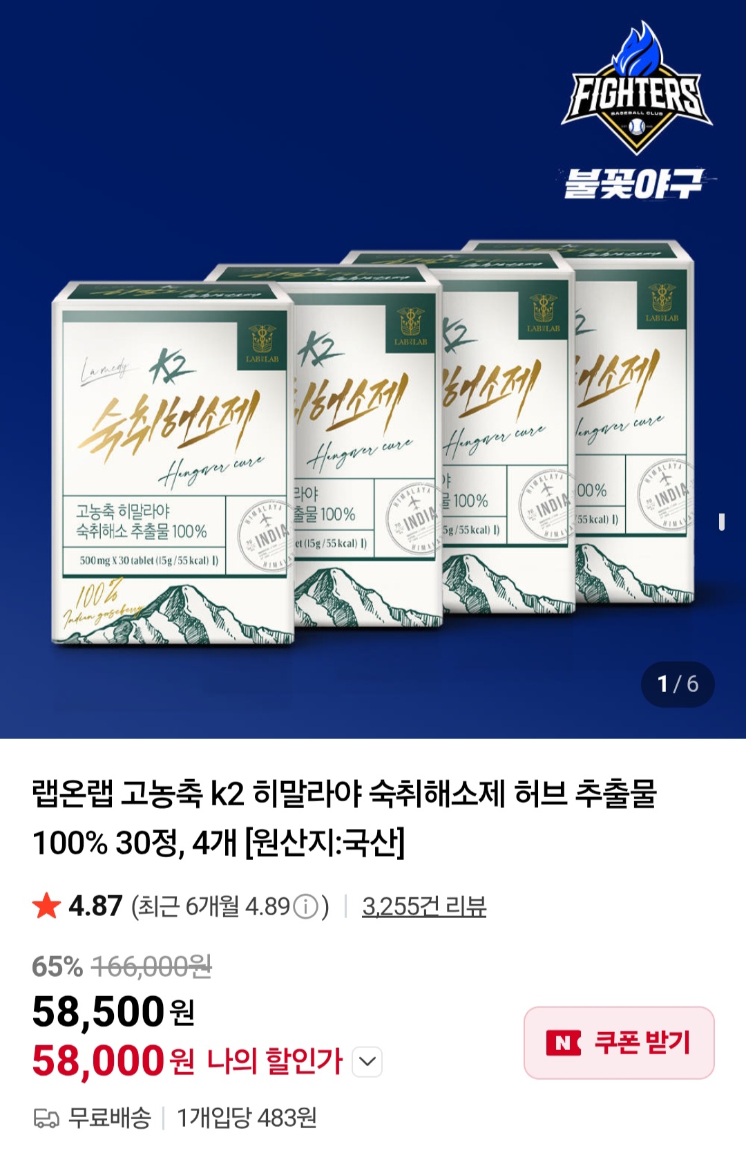 [네이버] 랩온랩 고농축 k2 히말라야 숙취해소제 허브 추출물 100% 120개 (58,000원/무배)