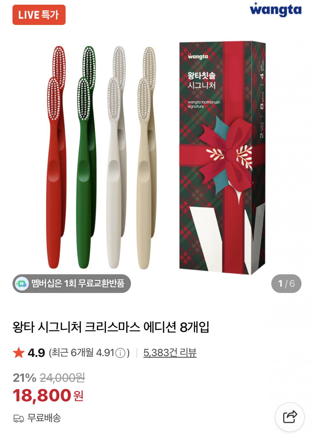 [네이버] 왕타 시그니처 크리스마스 칫솔 8개입 (18,800원/무료)