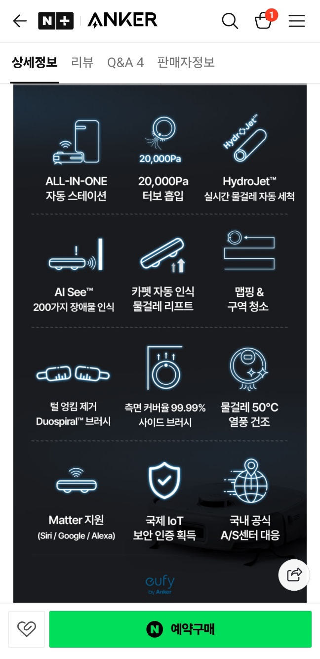 [네이버] 앤커 유피 E25 옴니 올인원 로봇청소기 T2353 (803,240원/무료)