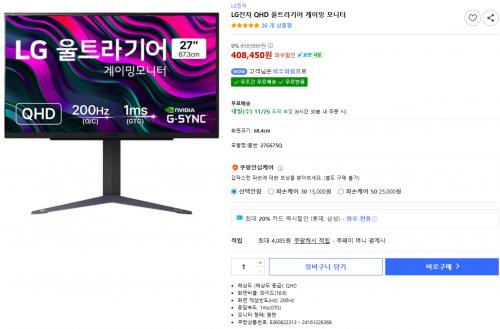 [쿠팡] 엘지 울트라기어 27GS75Q (408,450원/무료)