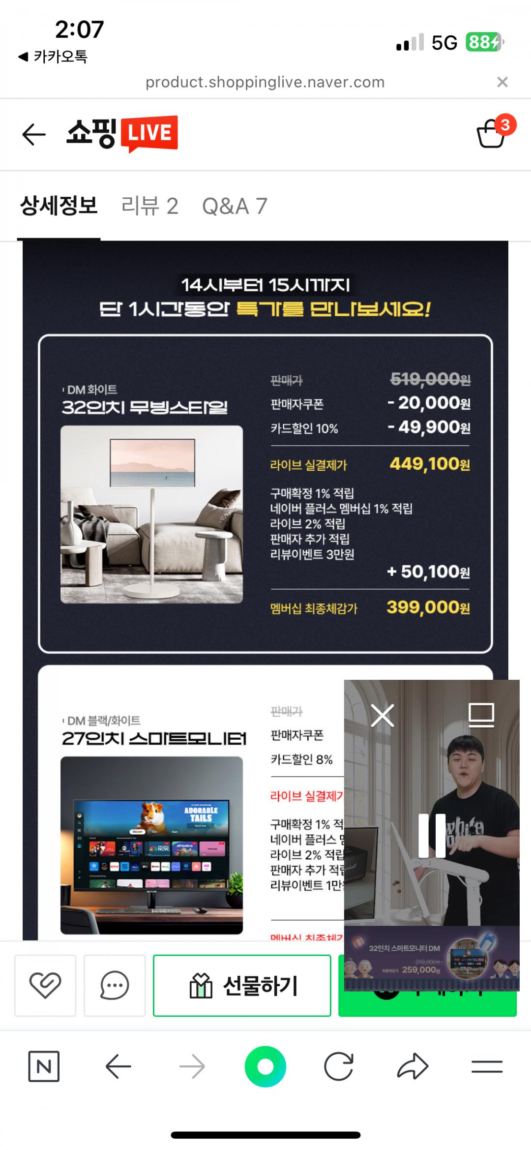 라이브 결제가+리뷰 이벤트+적립까지 하면 최종 체감가 399,000원