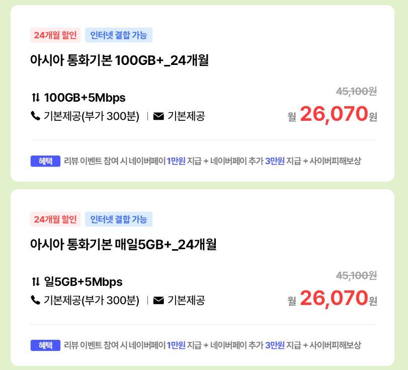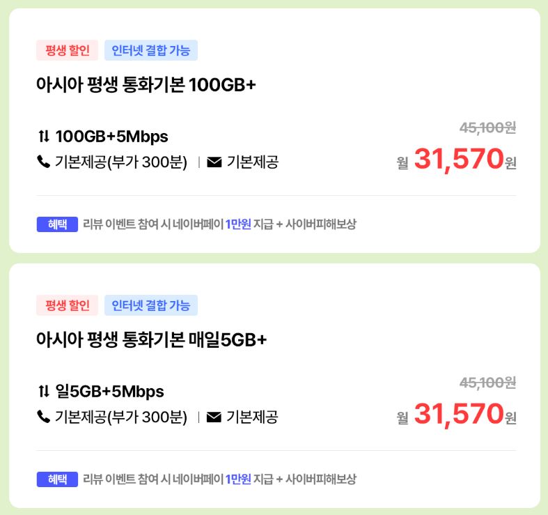 [아시아모바일] 알뜰폰 100GB+5Mbps / 네이버페이 4만원 (배송비 무료) > 국내핫딜