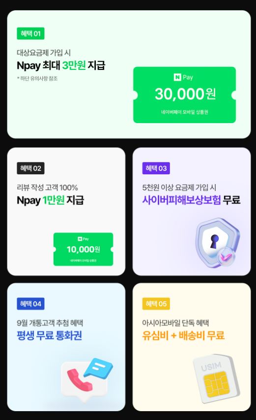 [아시아모바일] 알뜰폰 100GB+5Mbps / 네이버페이 4만원 (배송비 무료)
