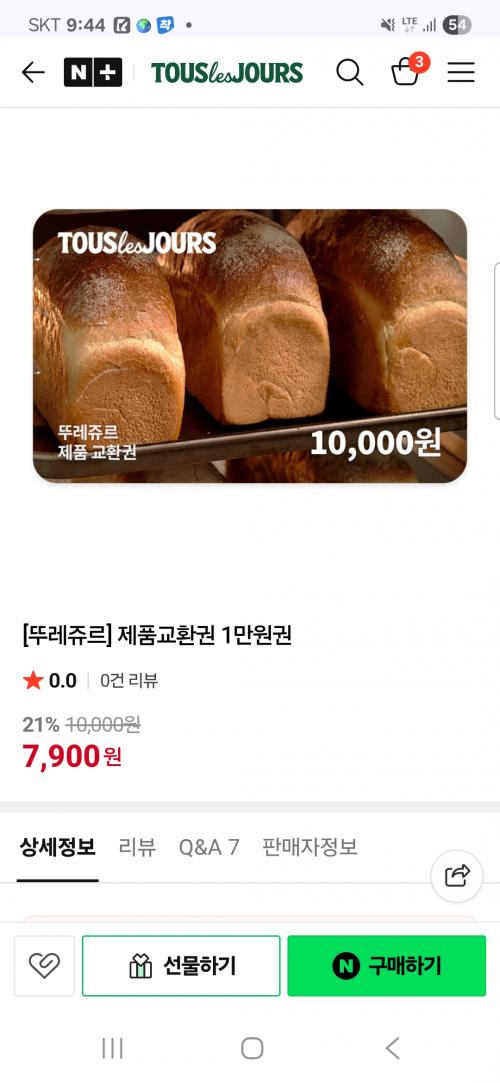 [네이버] 뚜레쥬르 1만원권 (7,900원/무배) > 국내핫딜