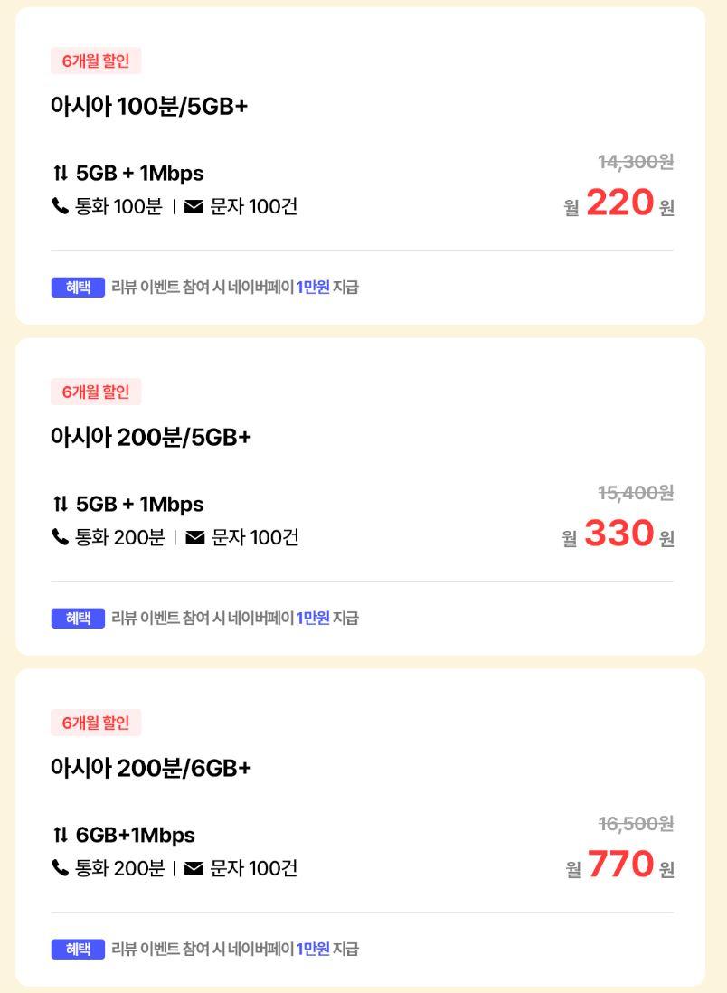 [아시아모바일] 데이터무제한 220원 (배송비 무료 / Npay 1만원까지) > 국내핫딜