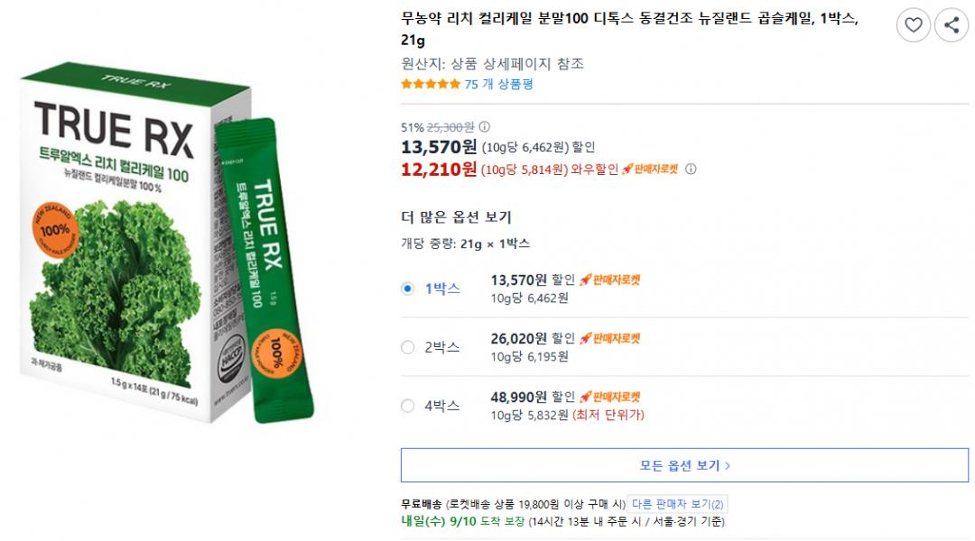 건강주스 갈아먹기 귀찮을때 분말 타 먹으면 되서 간편해요 일반케일보다 더 영양소 섭취하기에 좋고 4박스 구매시 10% 추가할인있어서 44,120원이라 박스당 11,030원정도라 저렴하네요~