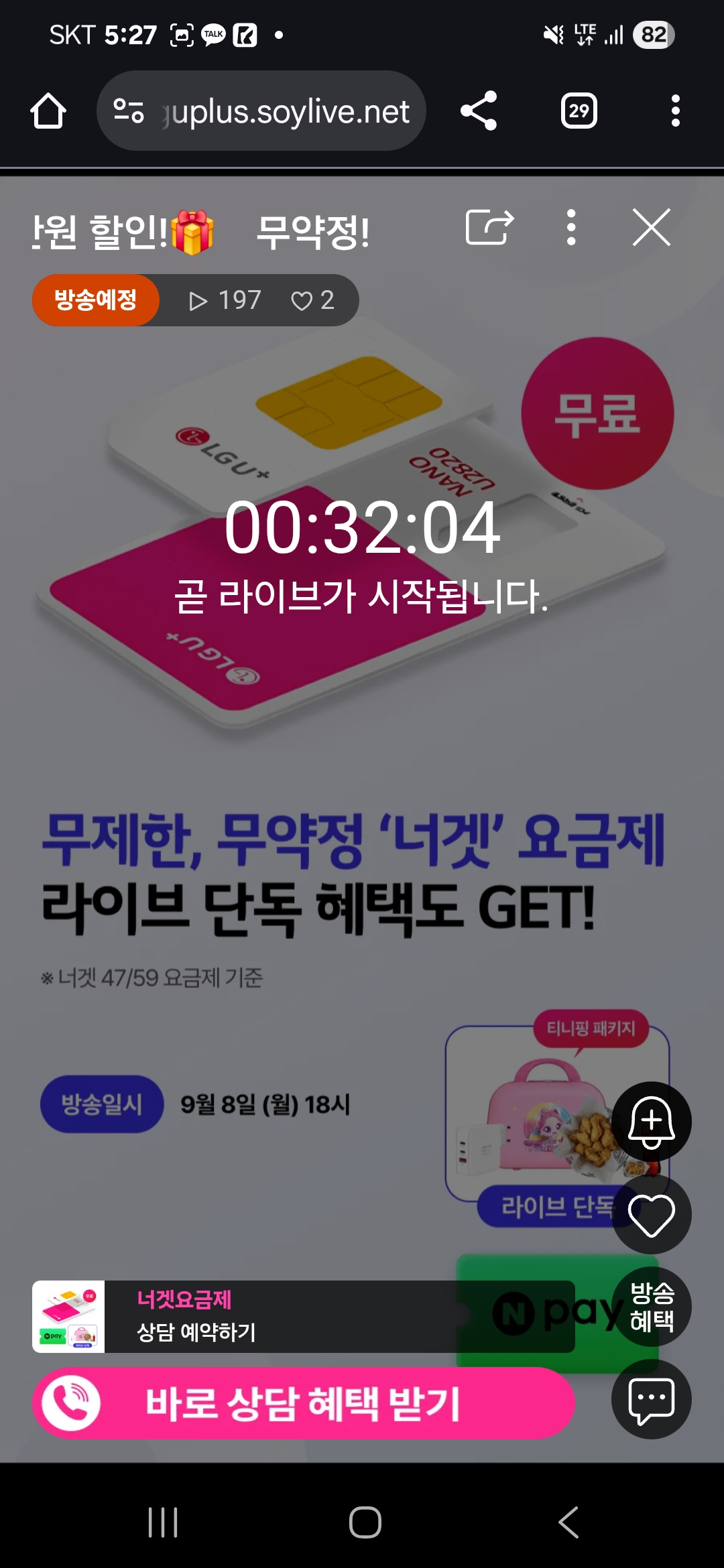 [U+] 너겟 요금제 라이브 유심비 무료, 충전기, 치킨 추가 지급 (월 47,000원/무료)
