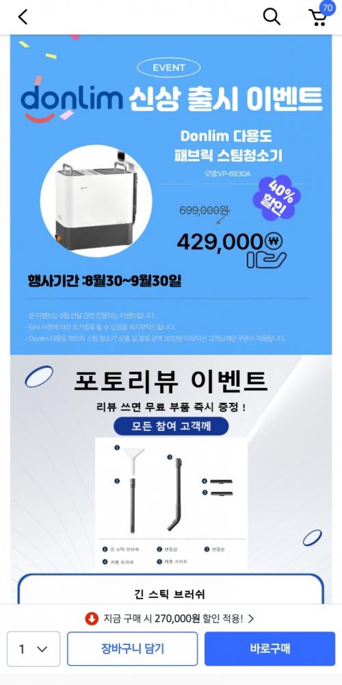 [쿠팡] Donlim 다용도 스팟클린 스팀청소기 (429000/무료)