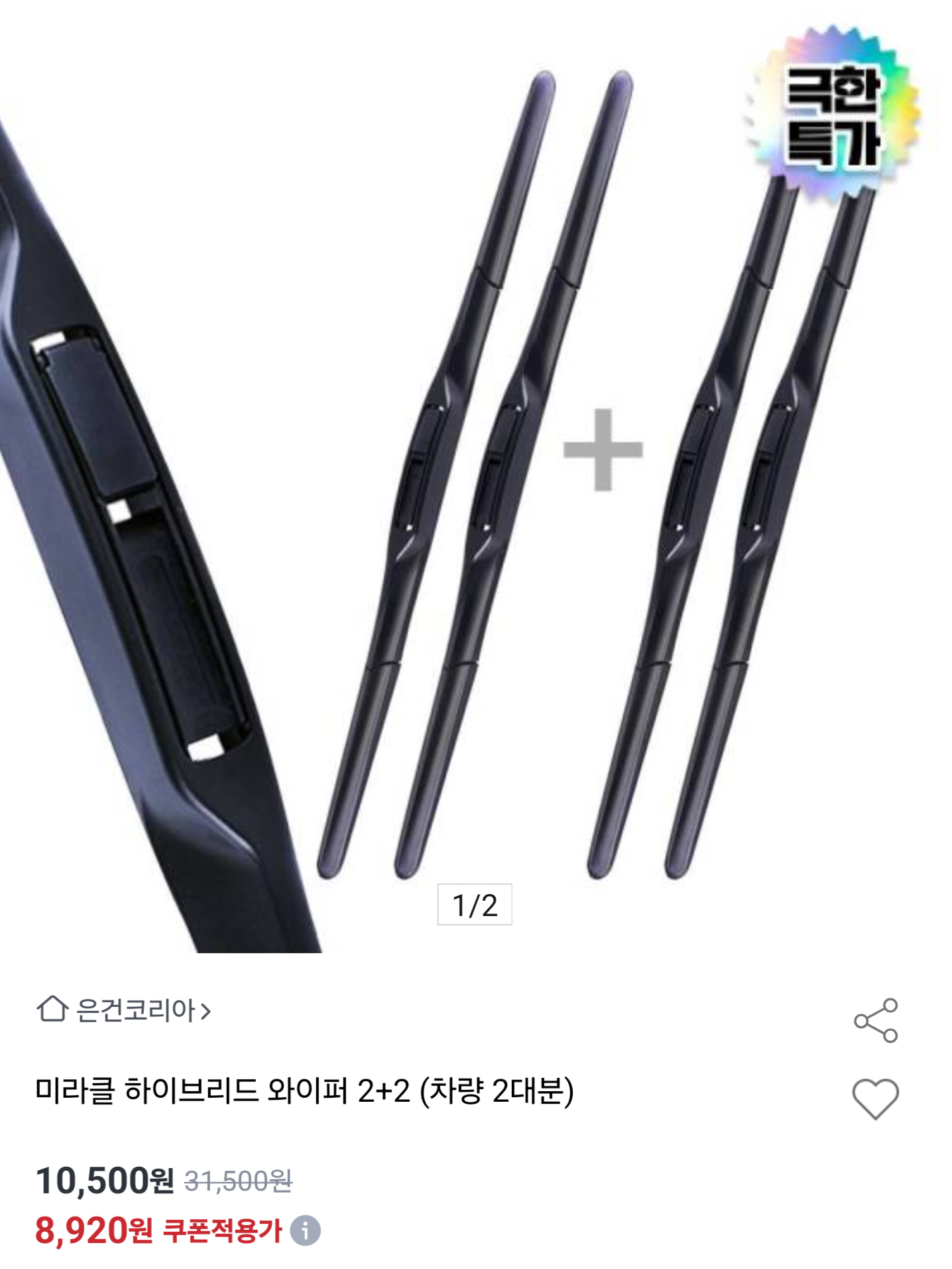 [옥션] 미라클 하이브리드 와이퍼 2+2 (8,920원/무료)