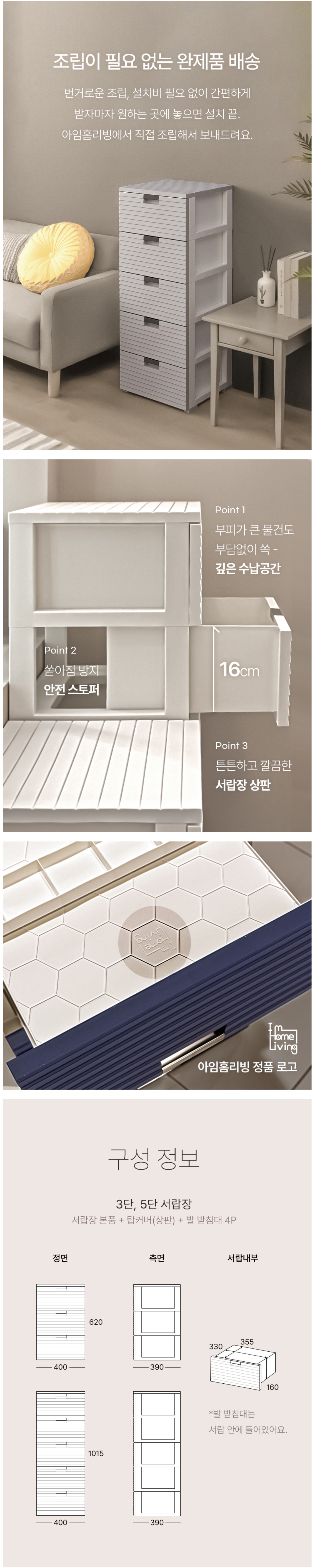 플라스틱 이지만 튼튼하고 5단이라 수납공간 많아서 사용하기 좋아요