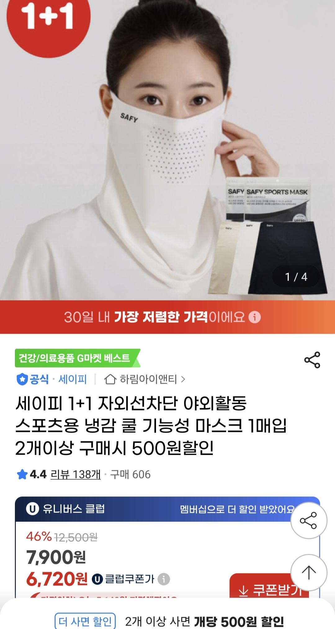 [지마켓]세이피 1+1 자외선차단 야외활동 스포츠용 냉감 쿨 기능성 마스크(6,720원/무료) > 국내핫딜