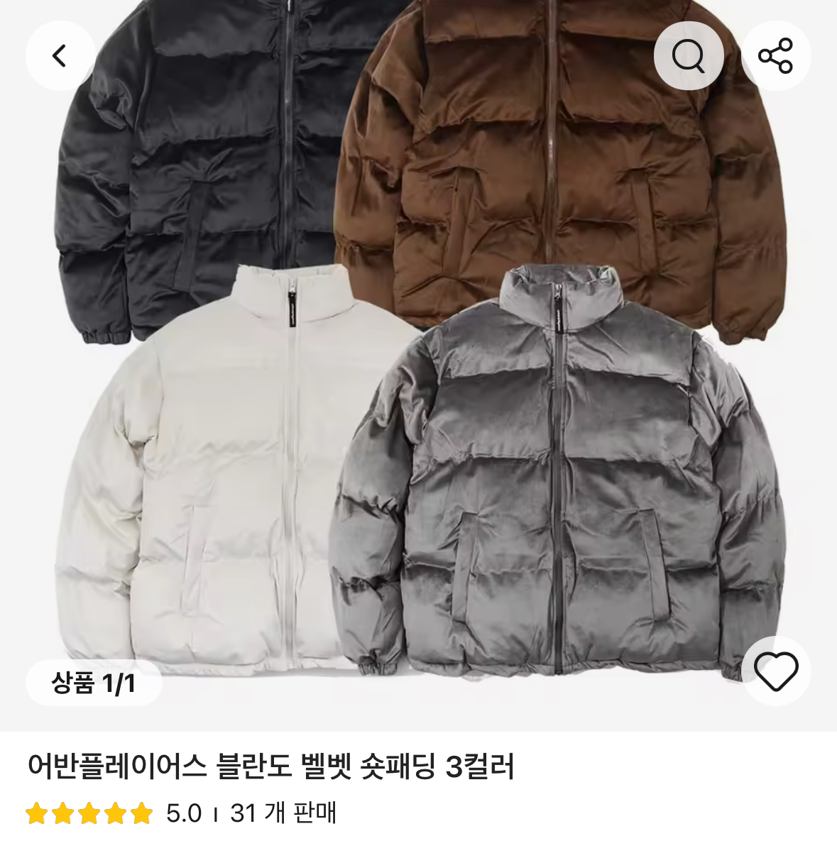 [알리] 어반플레이어스 블란도 벨벳 숏패딩 3컬러 (55,360원/무료)