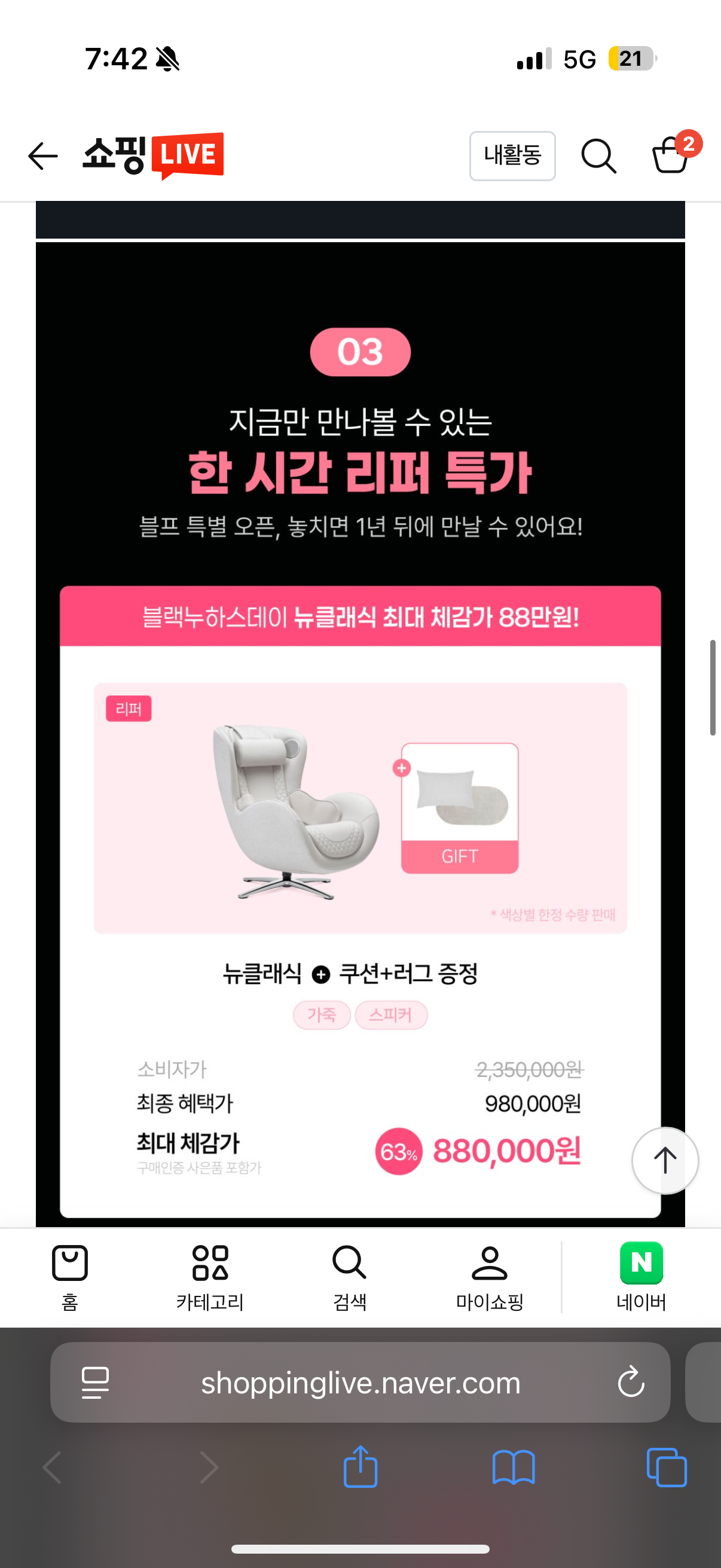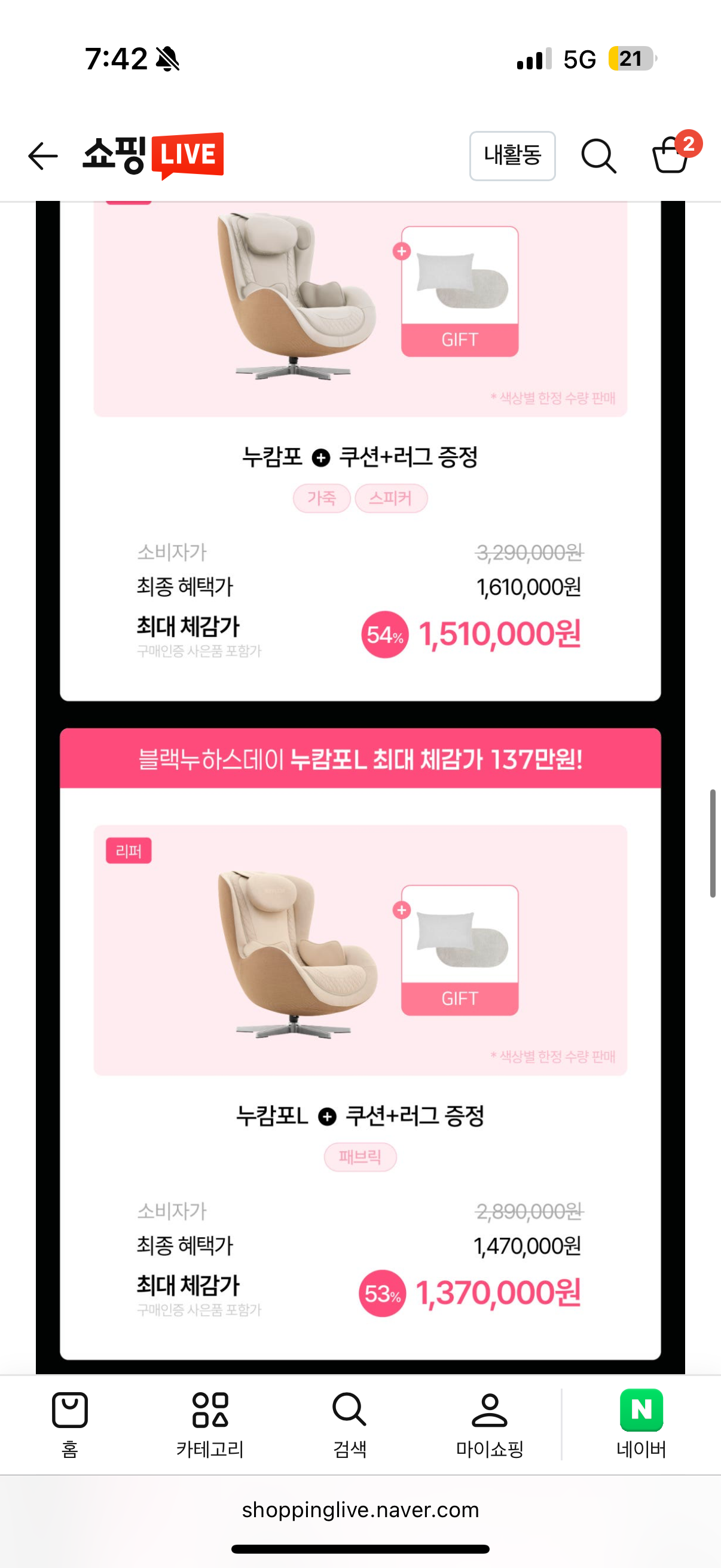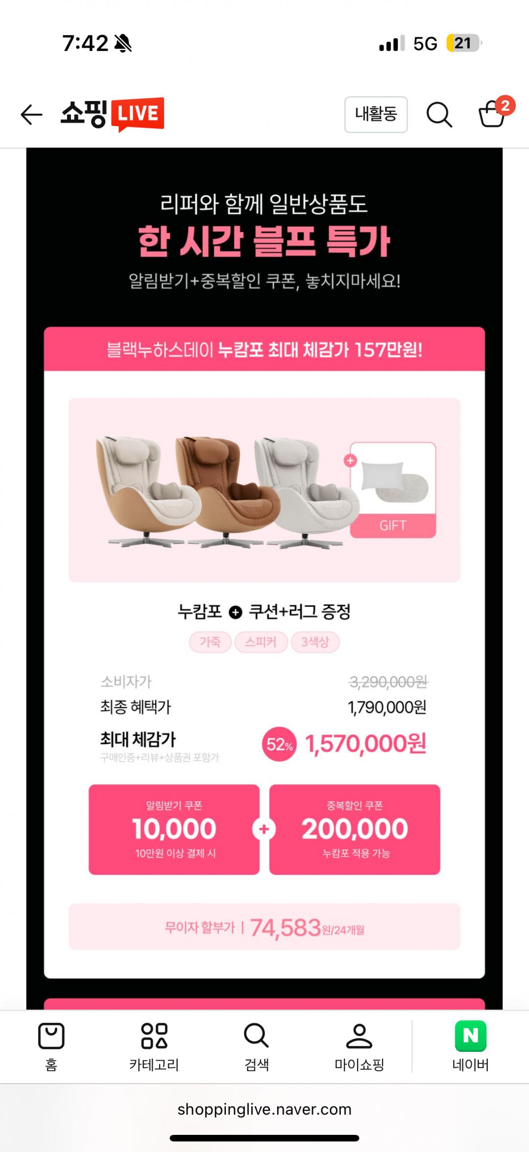 이외에도 할인 많이하니 안마의자 보실분들은 라방 특가때 한번 보셔요​