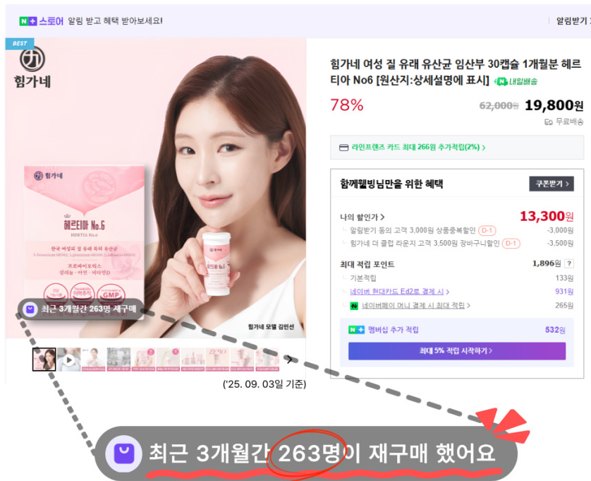 [공홈]68% 할인 힘가네 여성 질 유래 유산균 임산부 30캡슐 1개월분 헤르티아 (19,800원/무료배송)