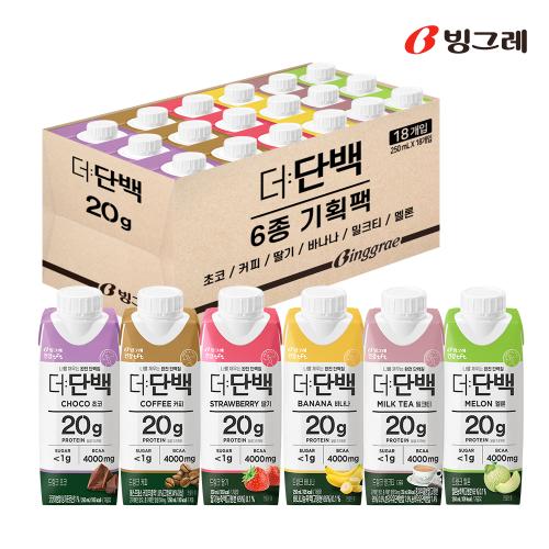 [네이버] 주말은 프로틴!! 38% 할인! 빙그레 더단백 250ml 6종 혼합 18개 단백질 음료 (23900원/무료)