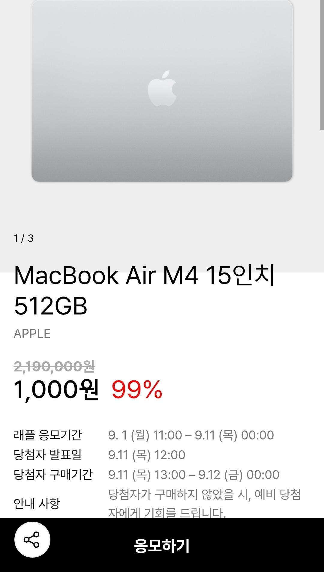 [무신사] 맥북 에어 M4 15인치 512GB 래플 (0원/무배) > 국내핫딜