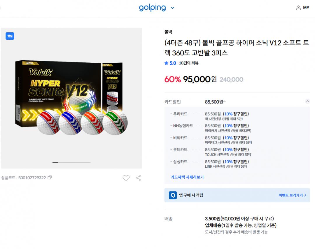 [골핑] (4더즌 48구) 볼빅 골프공 하이퍼 소닉 V12 소프트 트랙 360도 고반발 3피스 (95,000/무배) > 국내핫딜