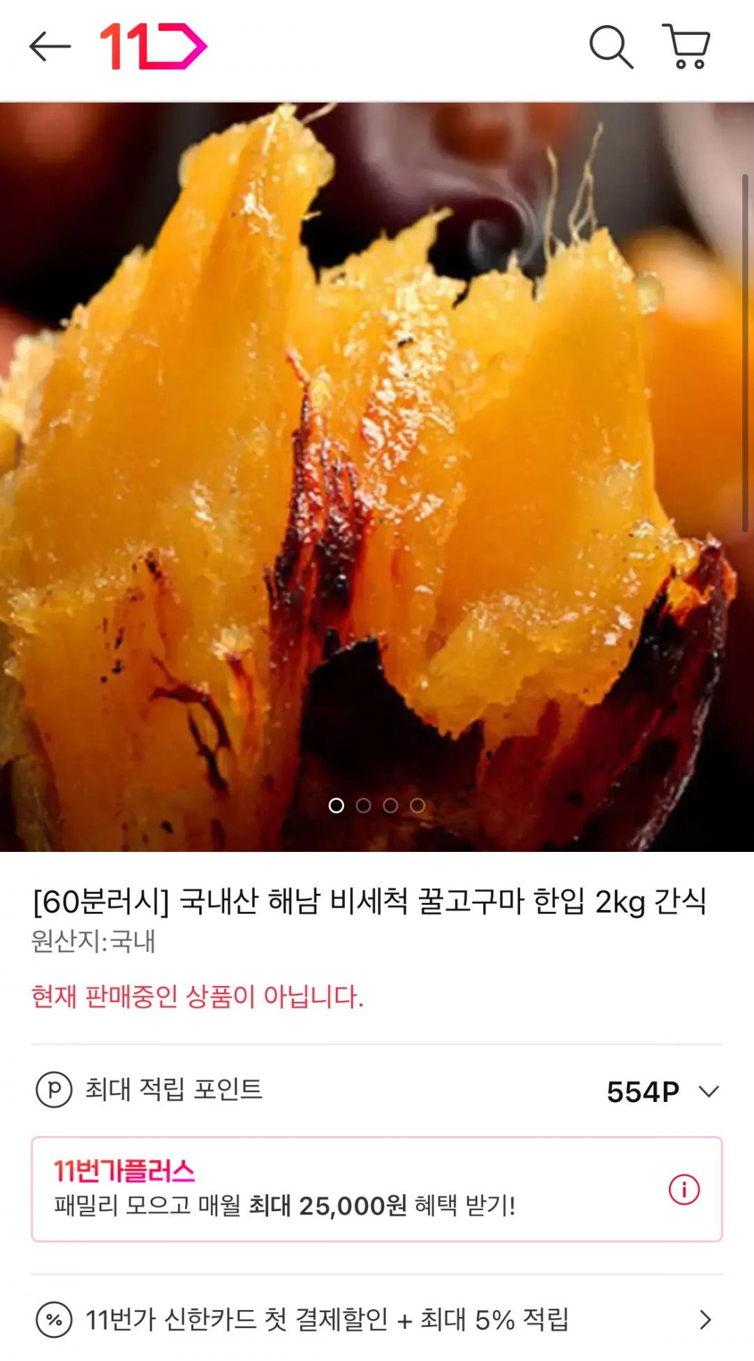[11번가] 60분러시 내산 해남 비세척 꿀고구마 한입 2kg (6.400원/무료) > 국내핫딜
