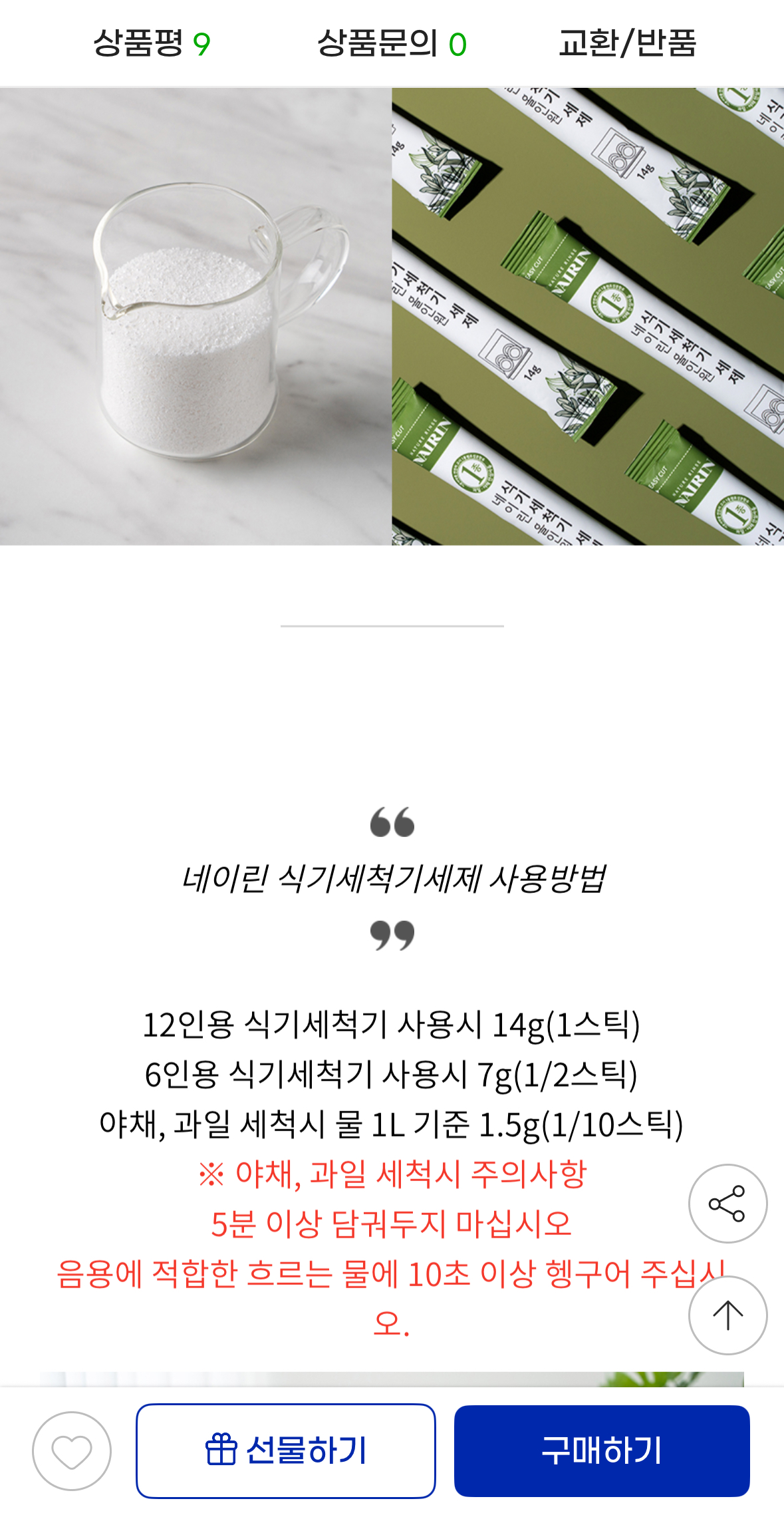 1종세제라 인체에 무해해서 야채 과일 세정할 때도 좋습니다
