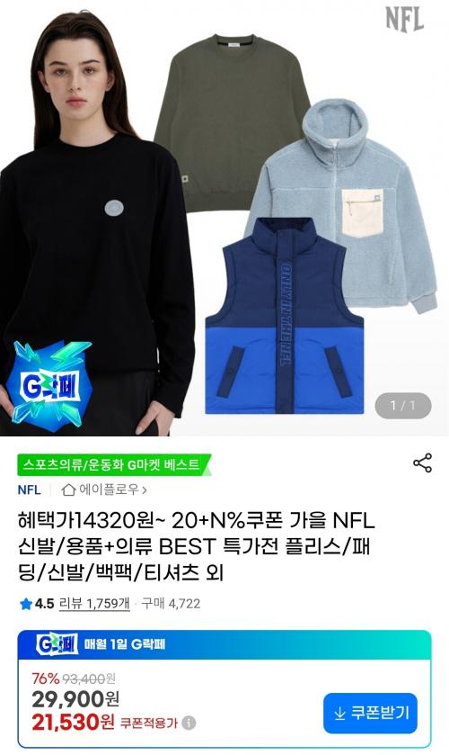 [G마켓] NFL 가을 의류/용품 78종 모음전 (14,320원~/무배) > 국내핫딜