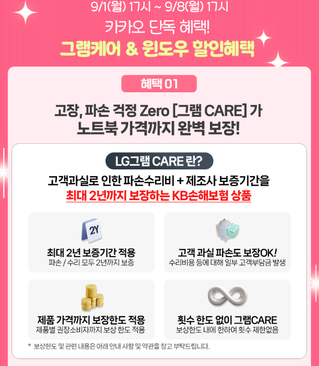 지금 할인기간에 구매하시면 최대 2년까지 그램케어도 들어갑니다.