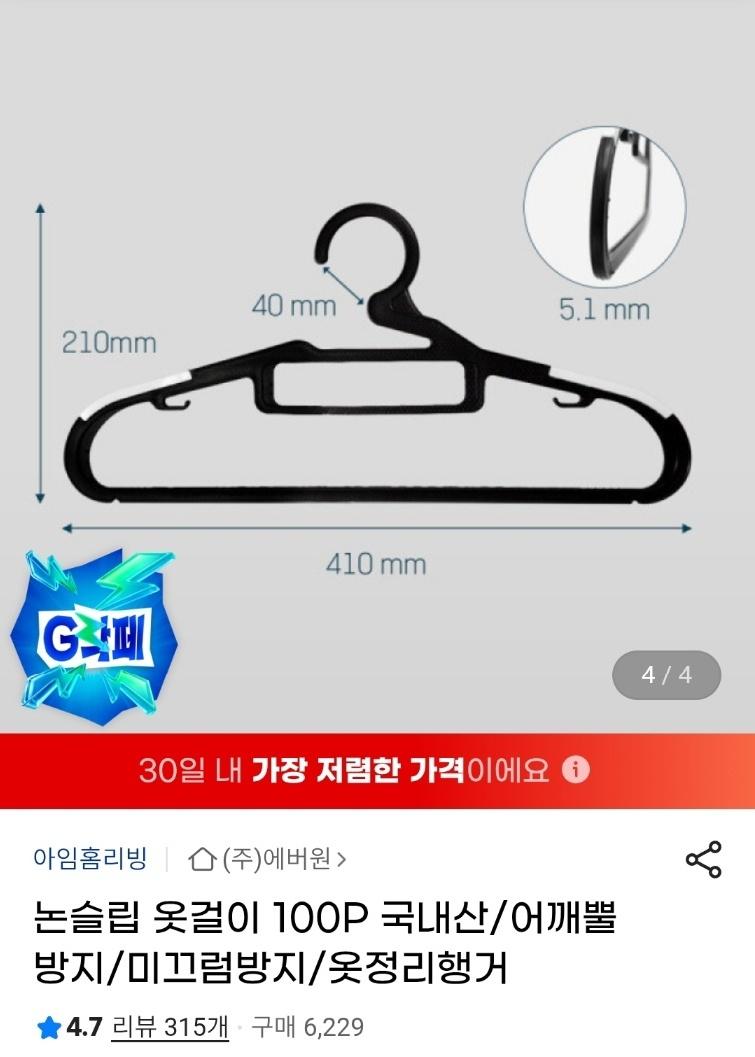 [지마켓] 어깨뿔방지/미끄럼방지 논슬립 옷걸이 100P (22,030원/무료) > 국내핫딜