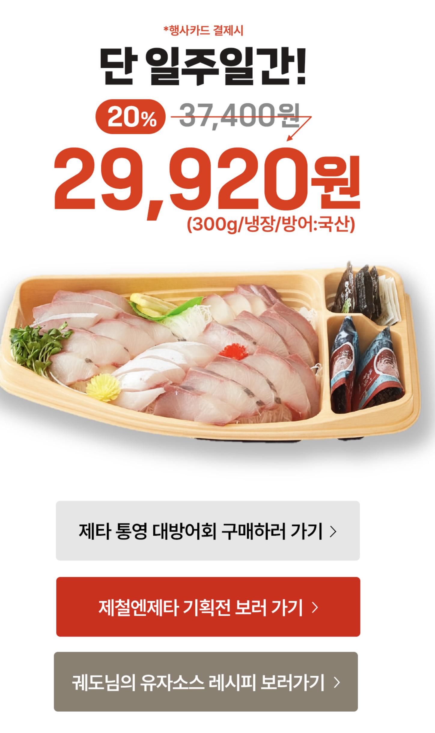 [롯데마트제타] 제철 대방어회 300g (29,920원) > 국내핫딜