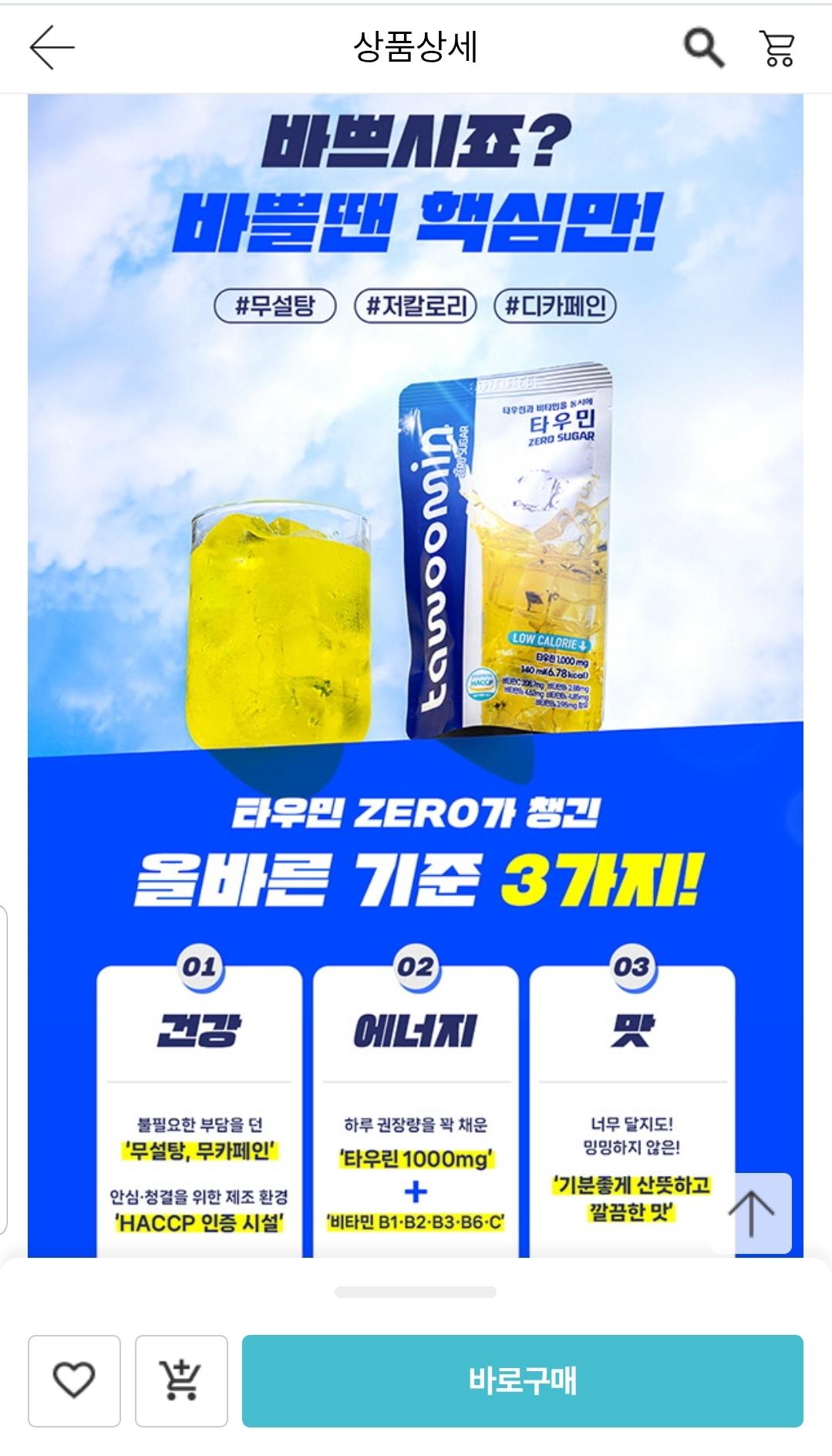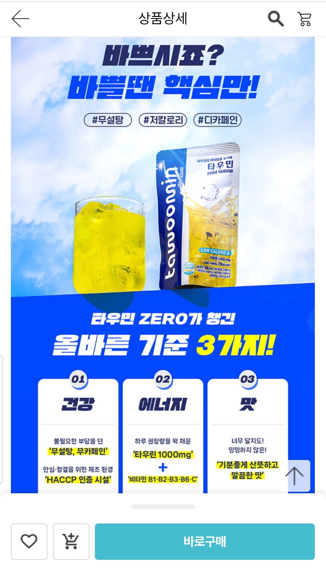 무설탕에 타우린 1000mg + 비타민 b + 비타민 C 들어간 피로 회복에 좋은 음료수입니다