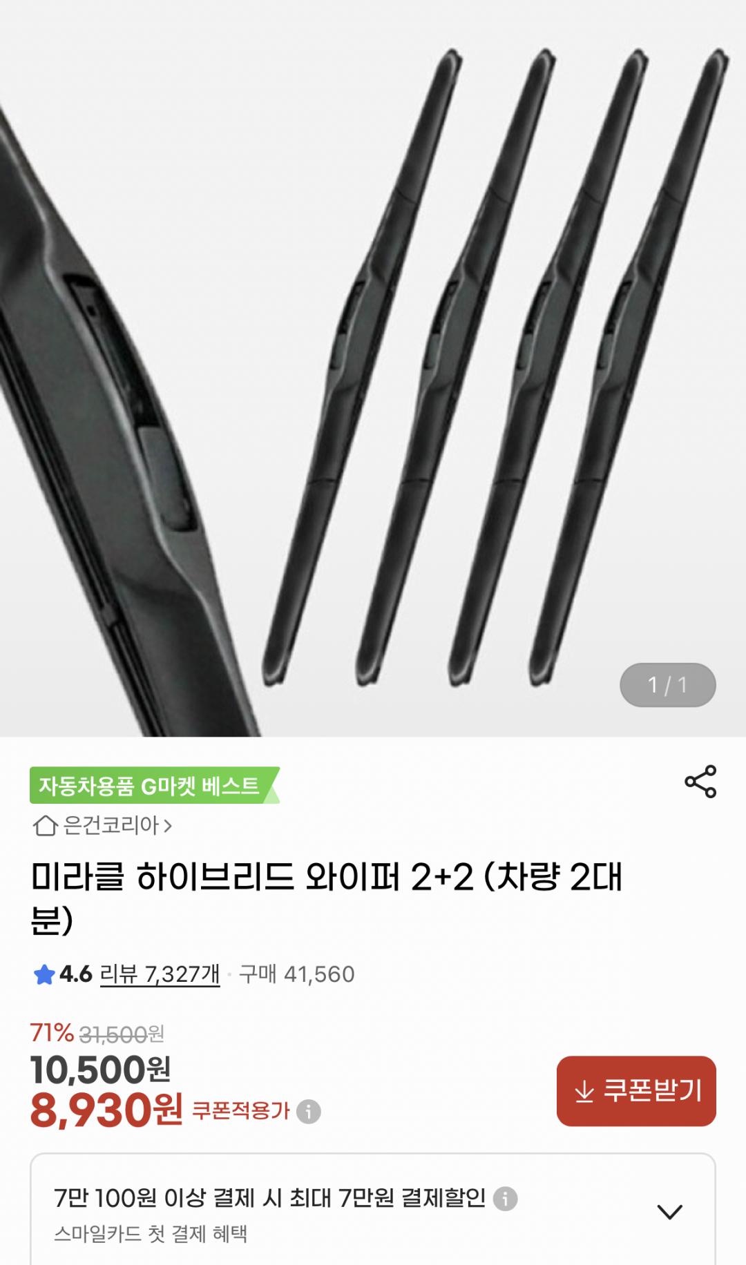 [지마켓] 미라클 하이브리드 와이퍼 2+2 (8,930원/무료)