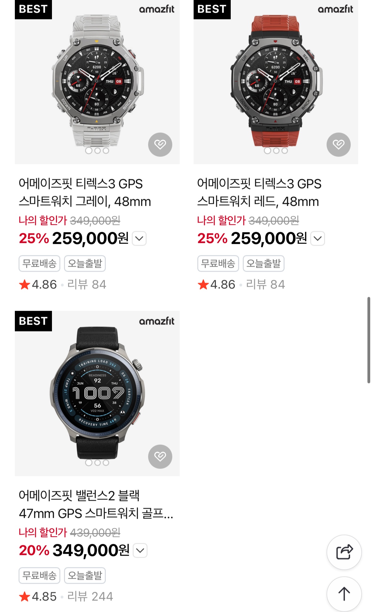 어메이즈핏 티렉스3 GPS 스마트워치 블랙 48mm 259,000원