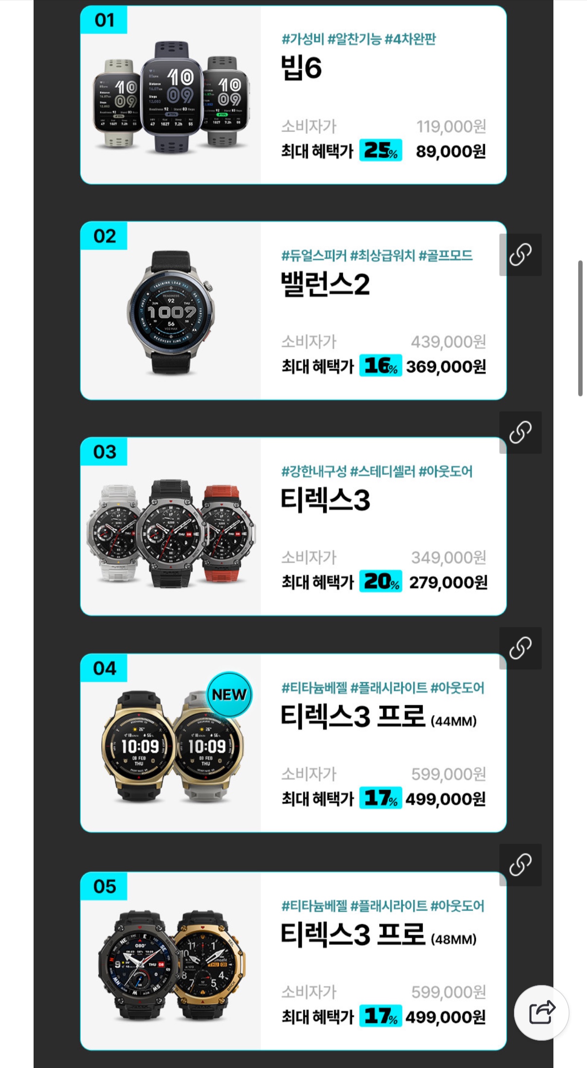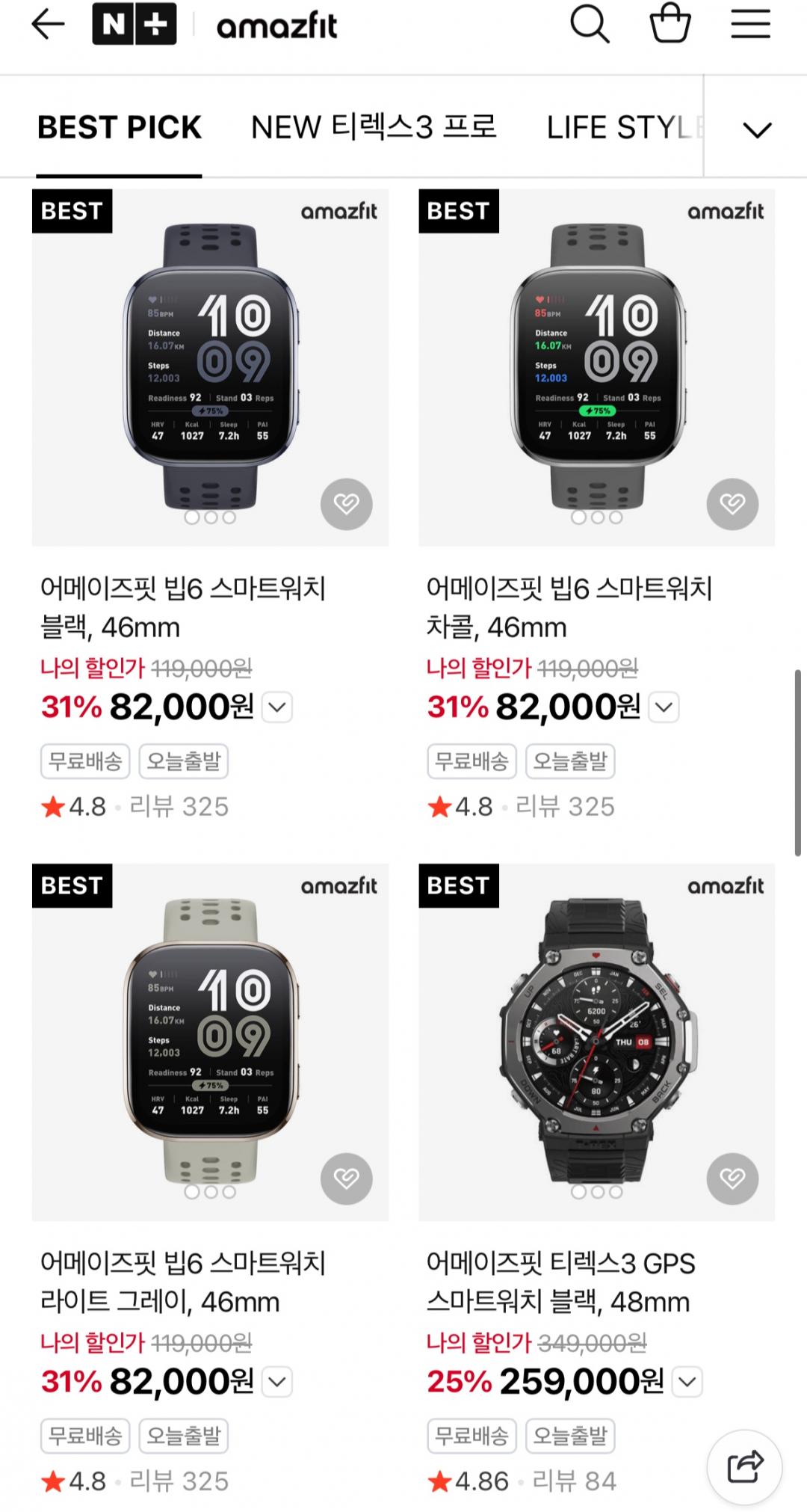 어메이즈핏 빕6 스마트워치 블랙 46mm 82,000원