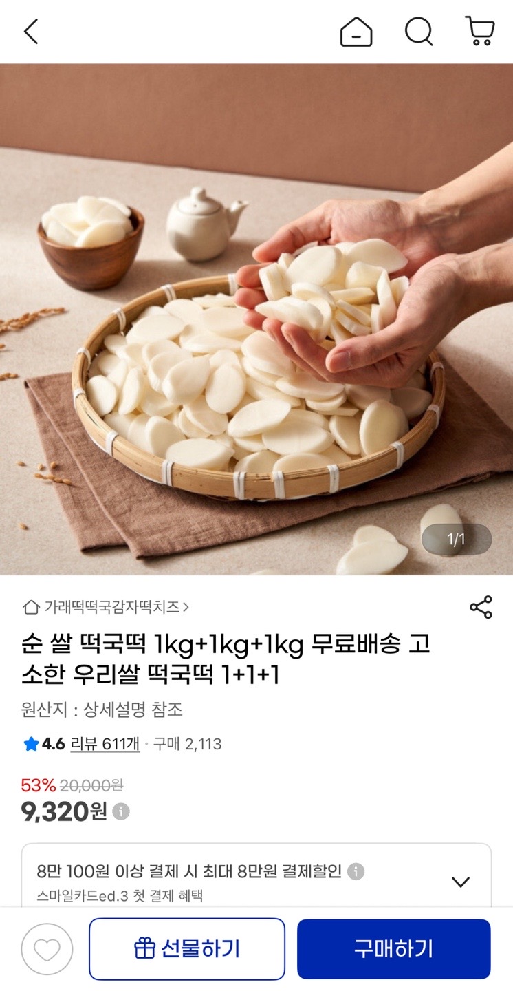 [지마켓] 순 쌀 떡국떡 3kg (9,320원/무배) > 국내핫딜