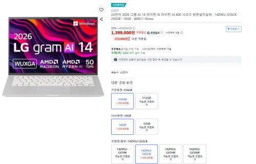 [쿠팡] LG전자 그램 14Z95U-GS5CK (1,399,000원/무료)