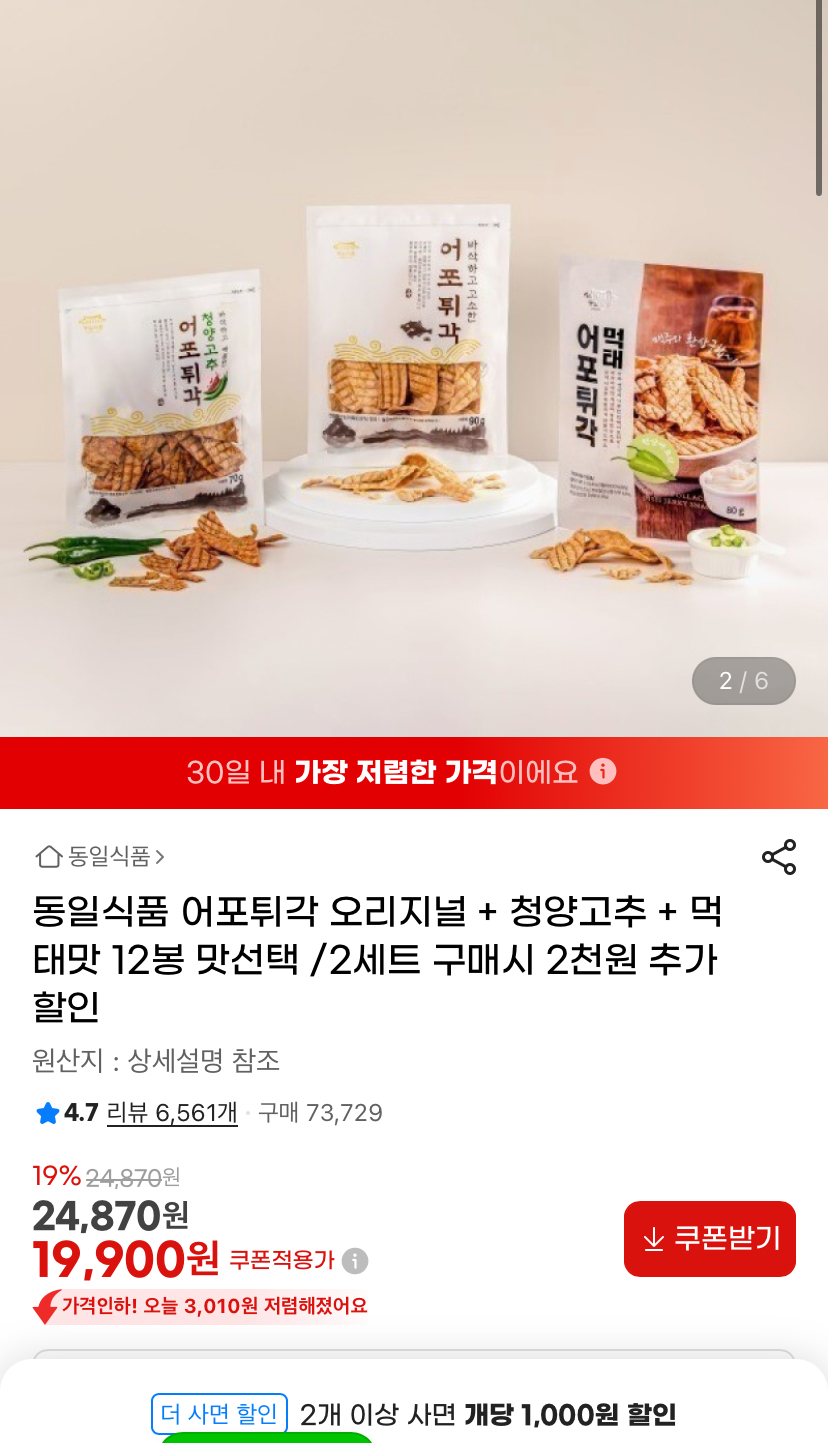 [지마켓]동일식품 어포튀각 오리지널/청양/먹태 맛 12봉 교차선택가능 (19,900원/무료) > 국내핫딜