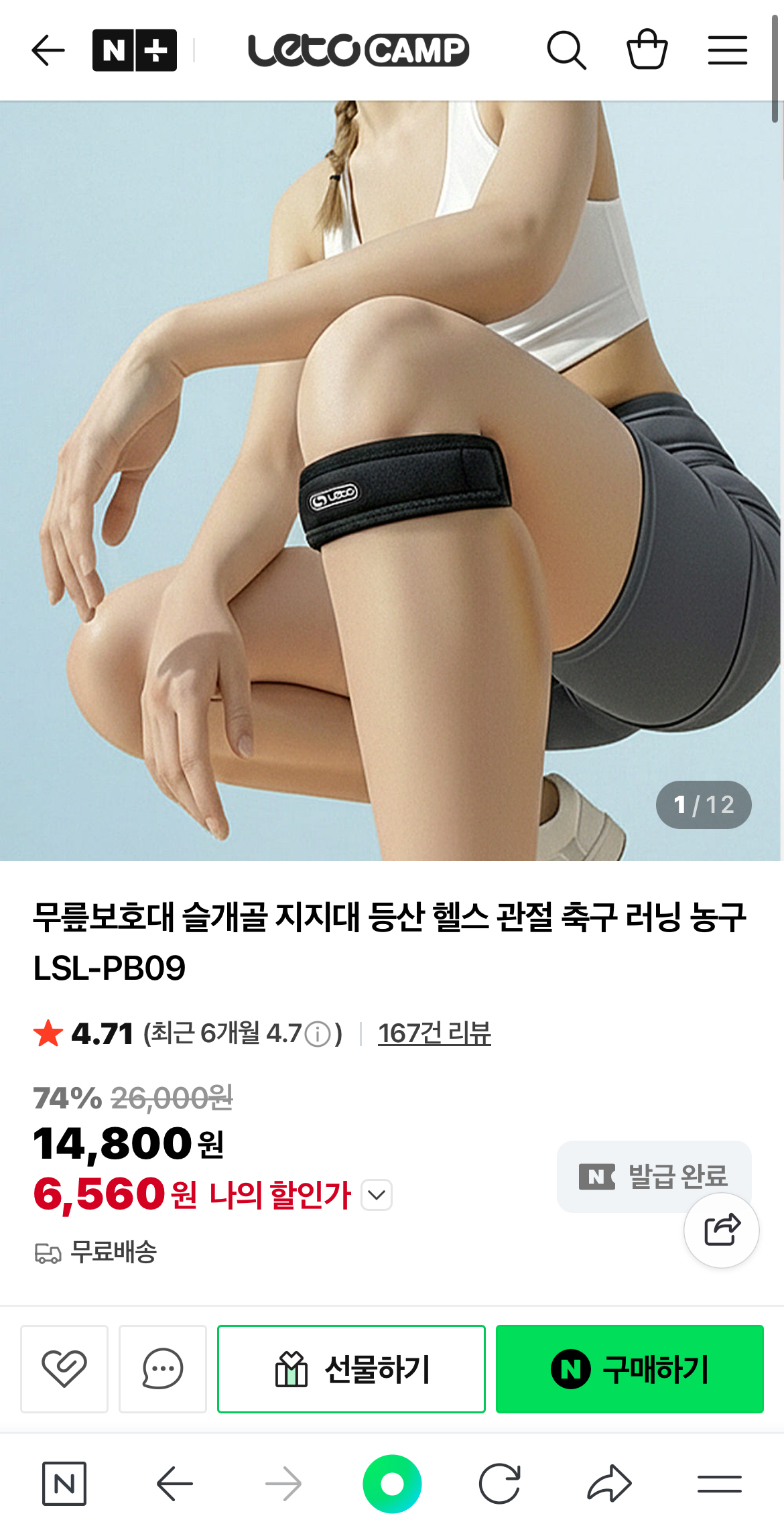 [네이버] 무릎보호대 (6,560원 / 무배)