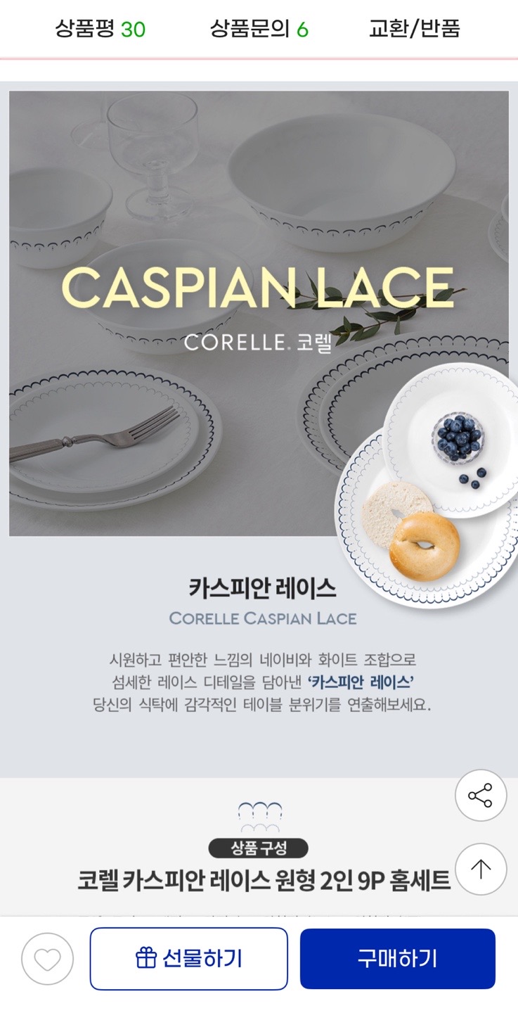 [지마켓] 코렐 카스피안레이스 원형 2인 9P 식기세트 (53,910원/무배) > 국내핫딜