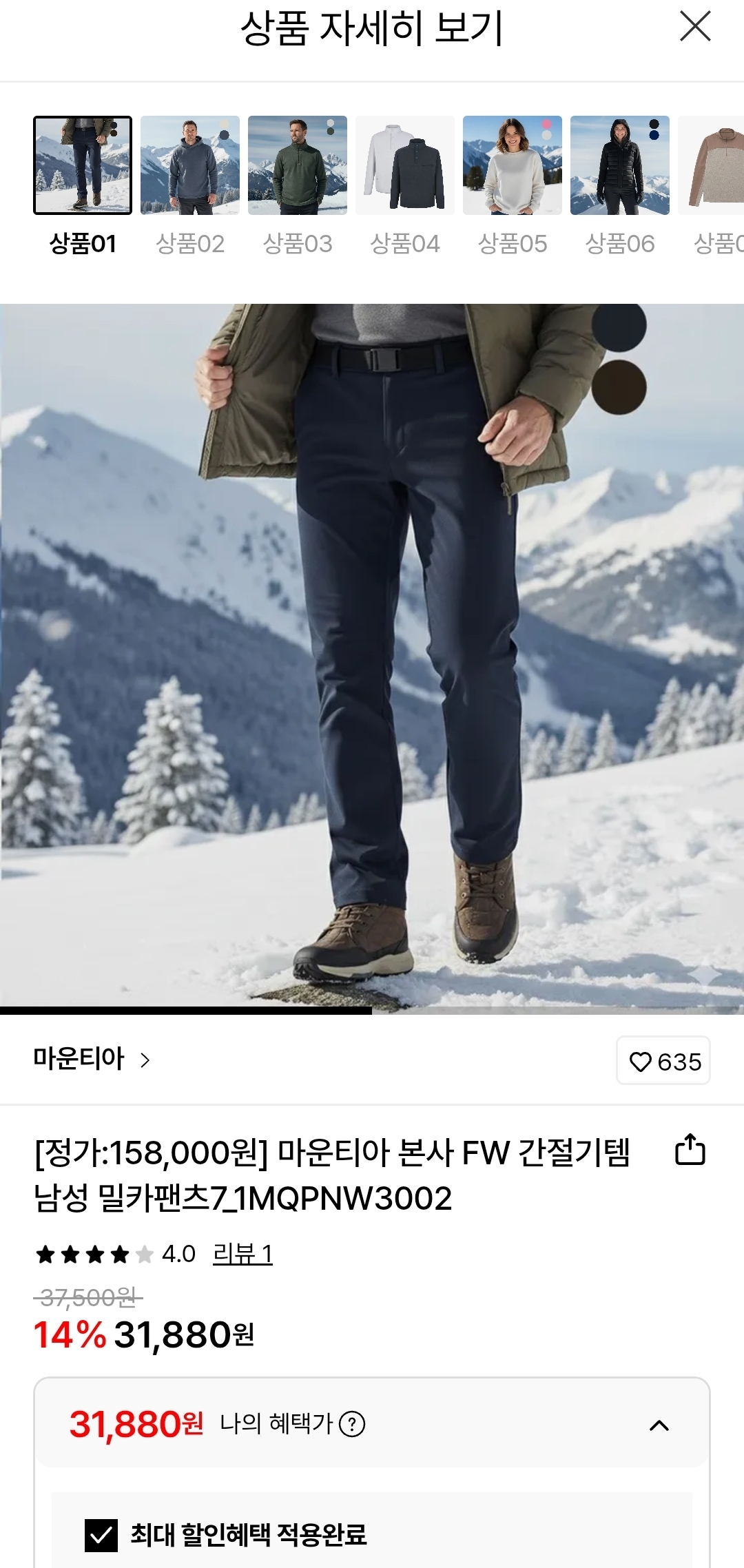 [롯데온] 마운티아 간절기템 밀카팬츠 (31,880원/무료)