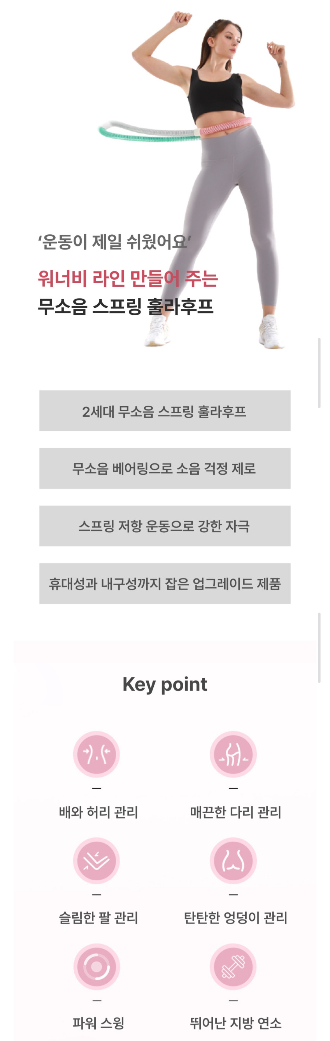 밤에도 사용 가능한 무소음 버전이고 허리 외에 다리, 등 운동까지 됩니다