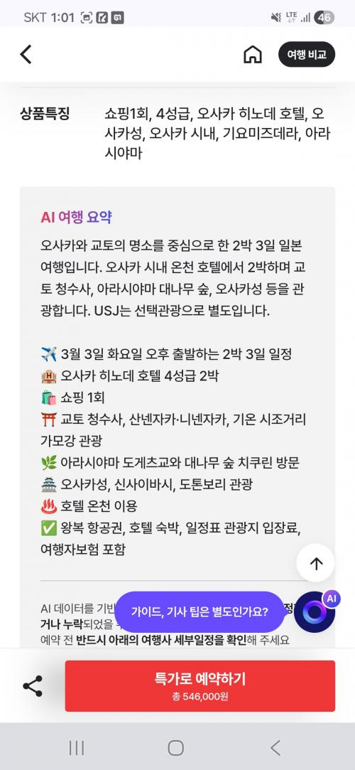 오사카 교토 아라시야마 2박3일 패키지입니다~