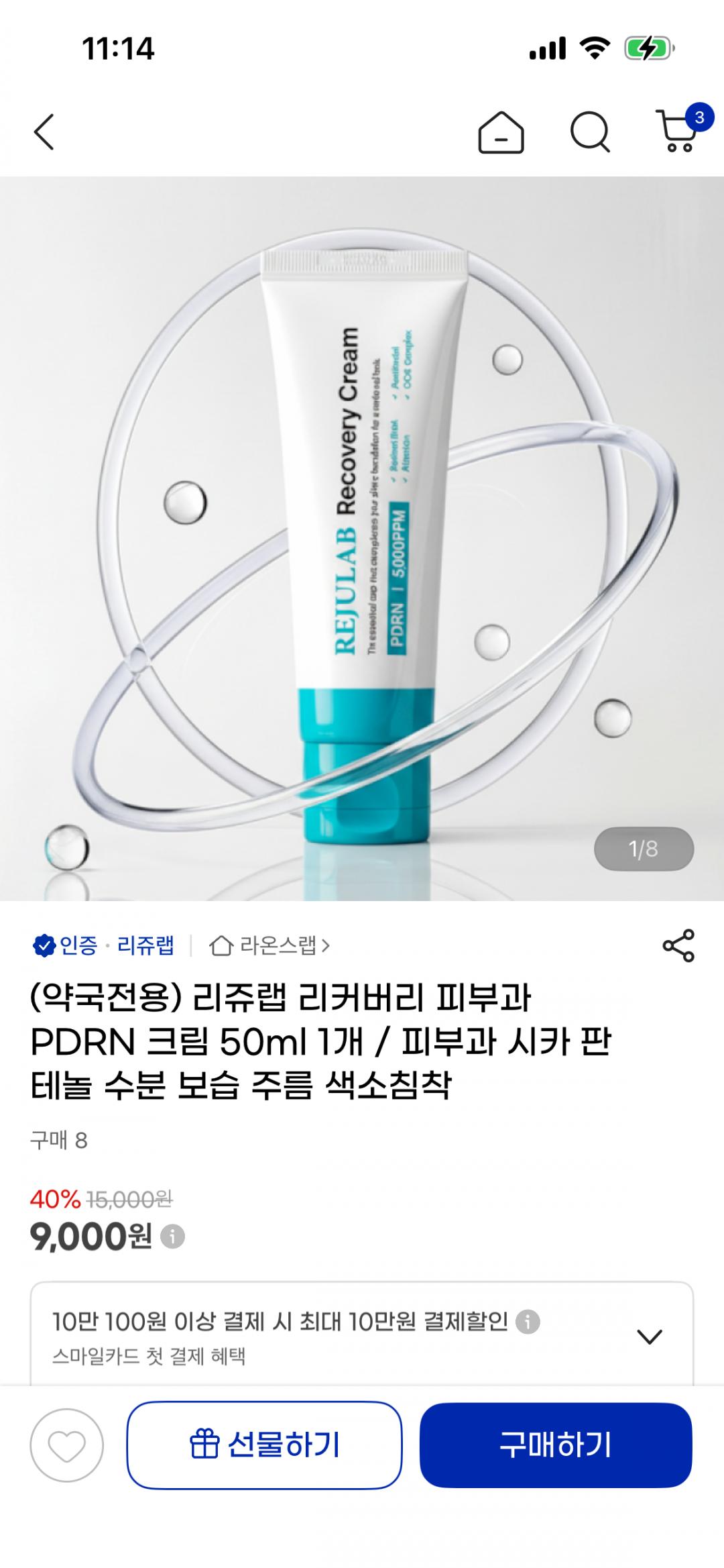 [지마켓] 리쥬랩 리커버리 피부과 PDRN 크림 50ml 1개 (9,000원/무료)