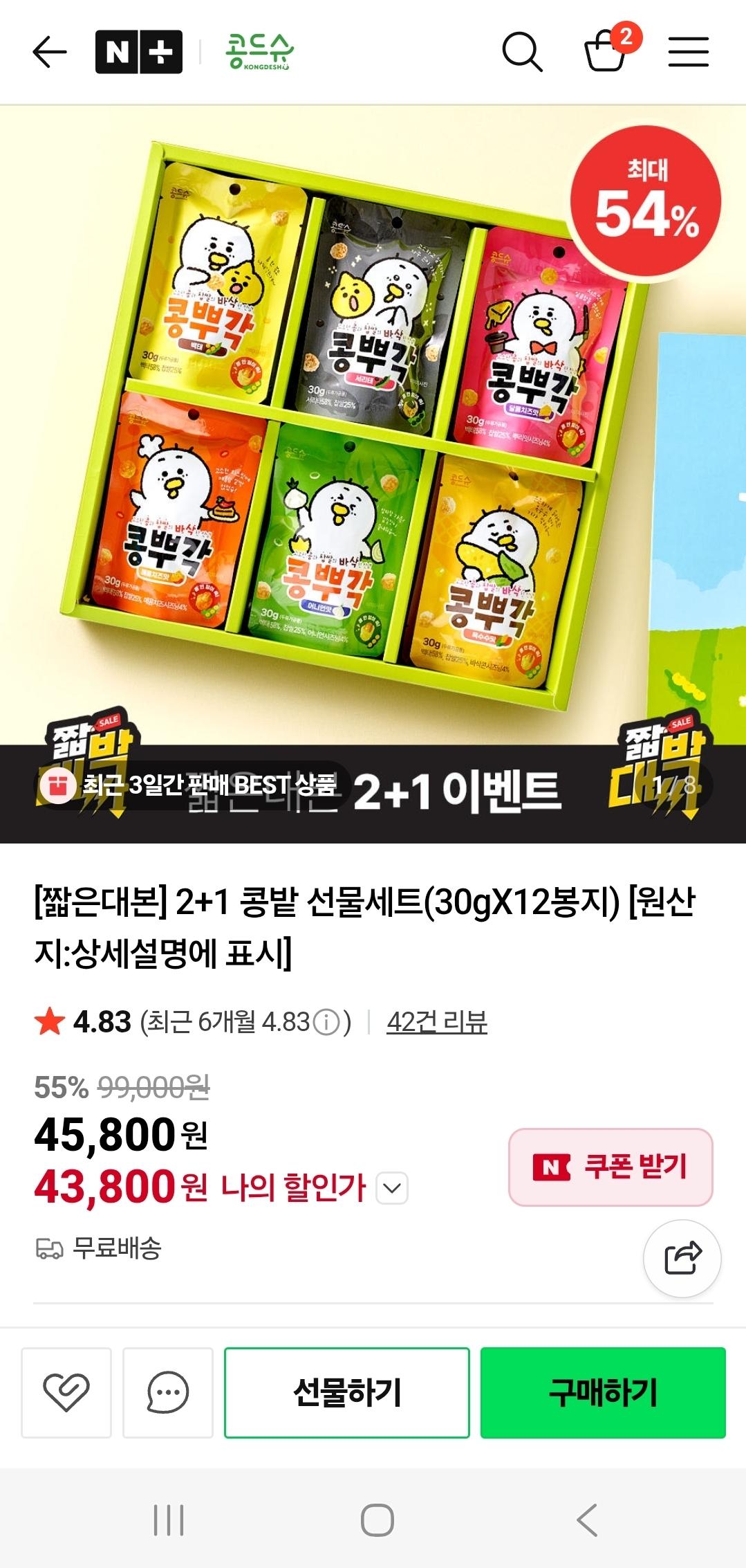 네이버) 짧은대본 유튜브 나온 2+1 콩밭 설선물세트 50% 할인 (45,800원 / 무배) > 국내핫딜