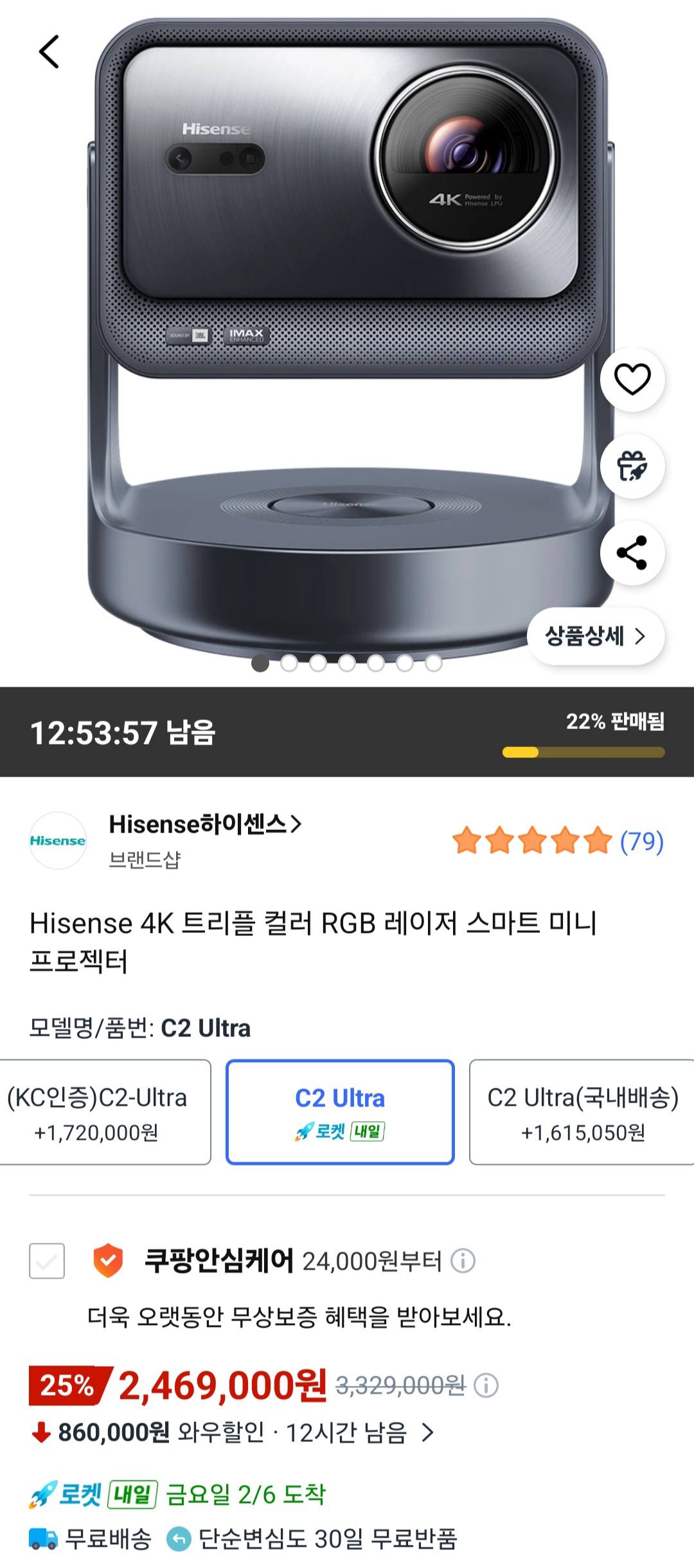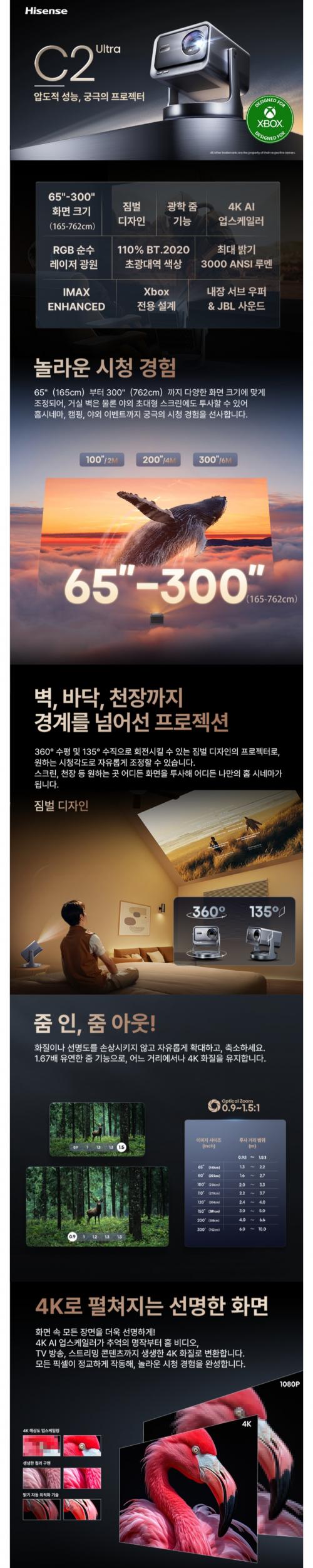 [쿠팡] 하이센스 4K 트리플 컬러 RGB 레이저 스마트 미니 프로젝터 (2,469,000원/무배)