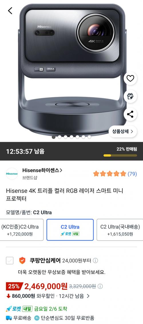 [쿠팡] 하이센스 4K 트리플 컬러 RGB 레이저 스마트 미니 프로젝터 (2,469,000원/무배) > 국내핫딜