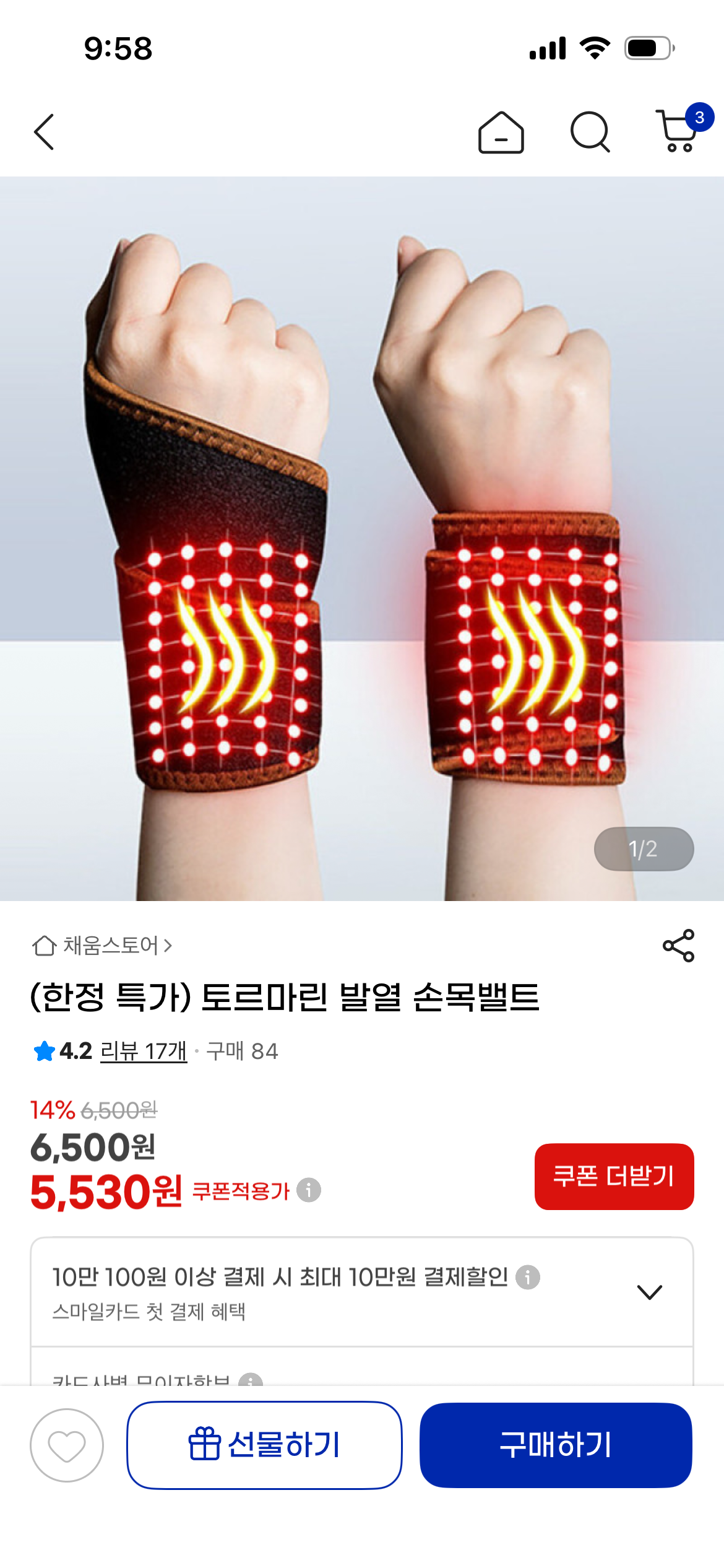 [지마켓]토르마린 발열 손목밸트 보호대 (5,530원/무료) > 국내핫딜