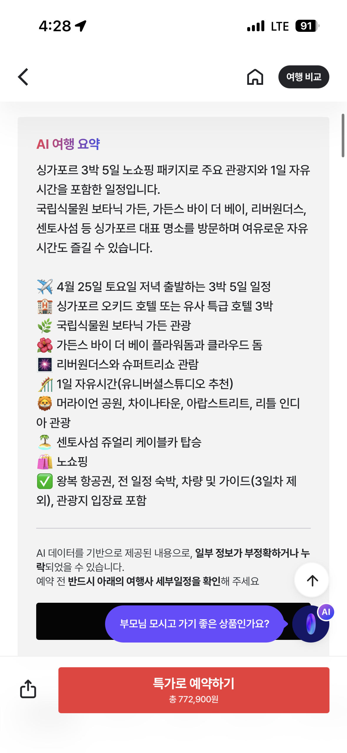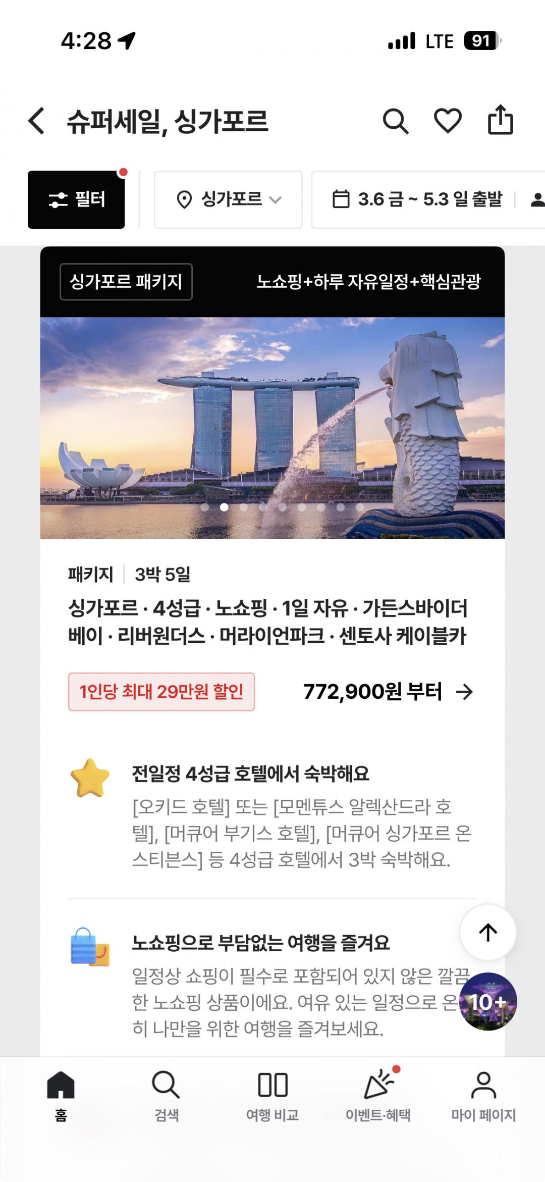 [트립스토어] 싱가포르 3박 5일 패키지 772,900원 > 국내핫딜