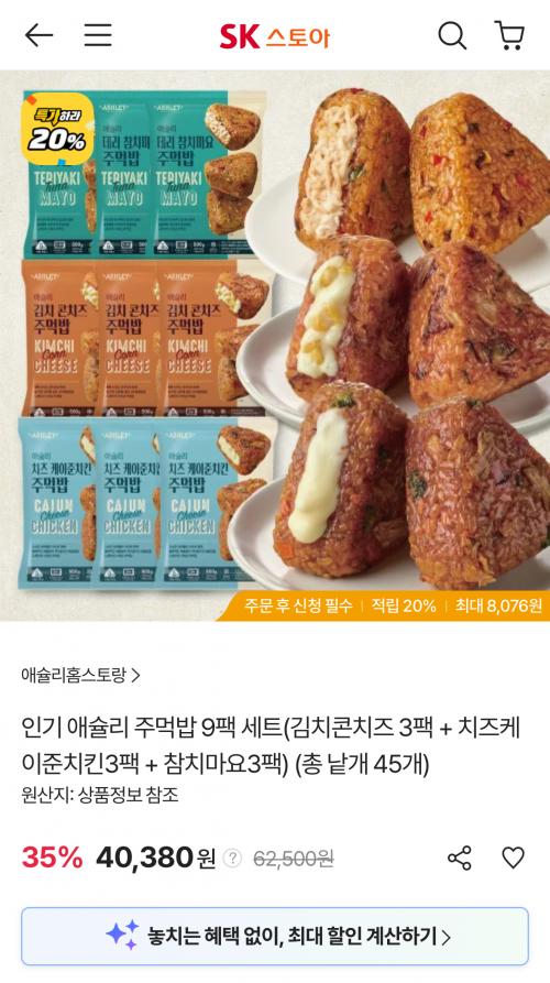 [sk스토아] 인기 애슐리 주먹밥 9팩 세트 (낱개 총 45개) (40,380원/무료)